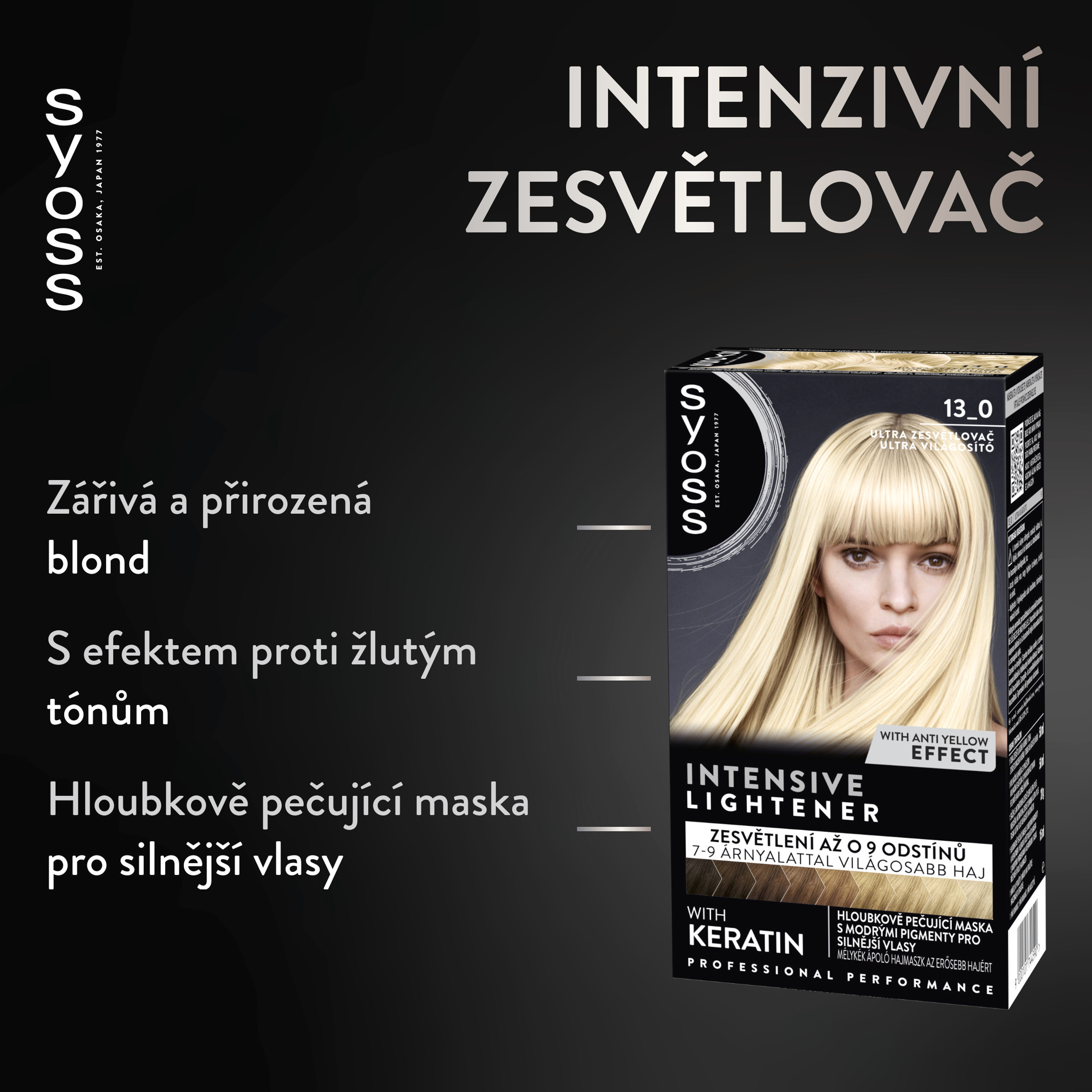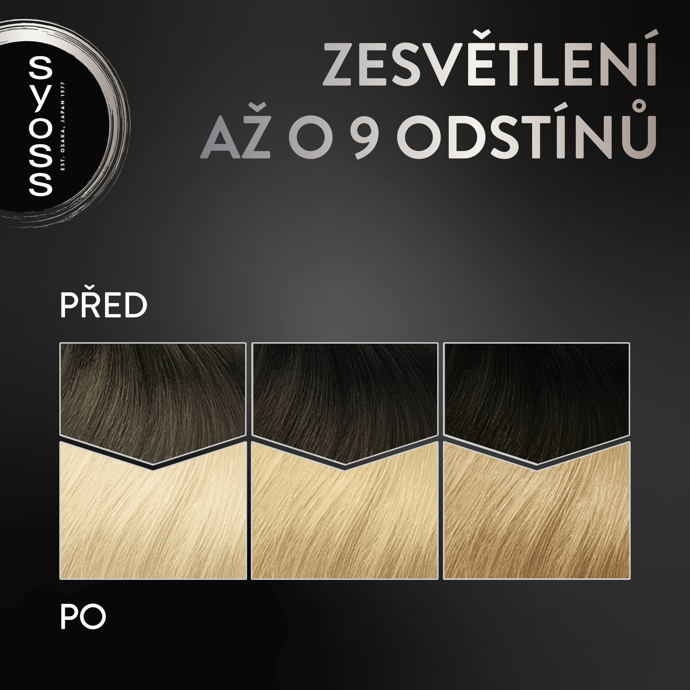 Syoss zesvětlovače s keratinem zajišťují zářivou a přirozeně vypadající blond od kořínků až ke konečkům i na tmavých vlasech, dodávají požadovaný blond odstín až s 9 stupni zesvětlení a snižují lámavost vlasů*. Hloubkově pečující maska s modrými pigmenty a s keratinem posiluje vlasy zevnitř, uhlazuje jejich povrch a chrání je před dalším lámáním. *vs. neošetřené vlasy.