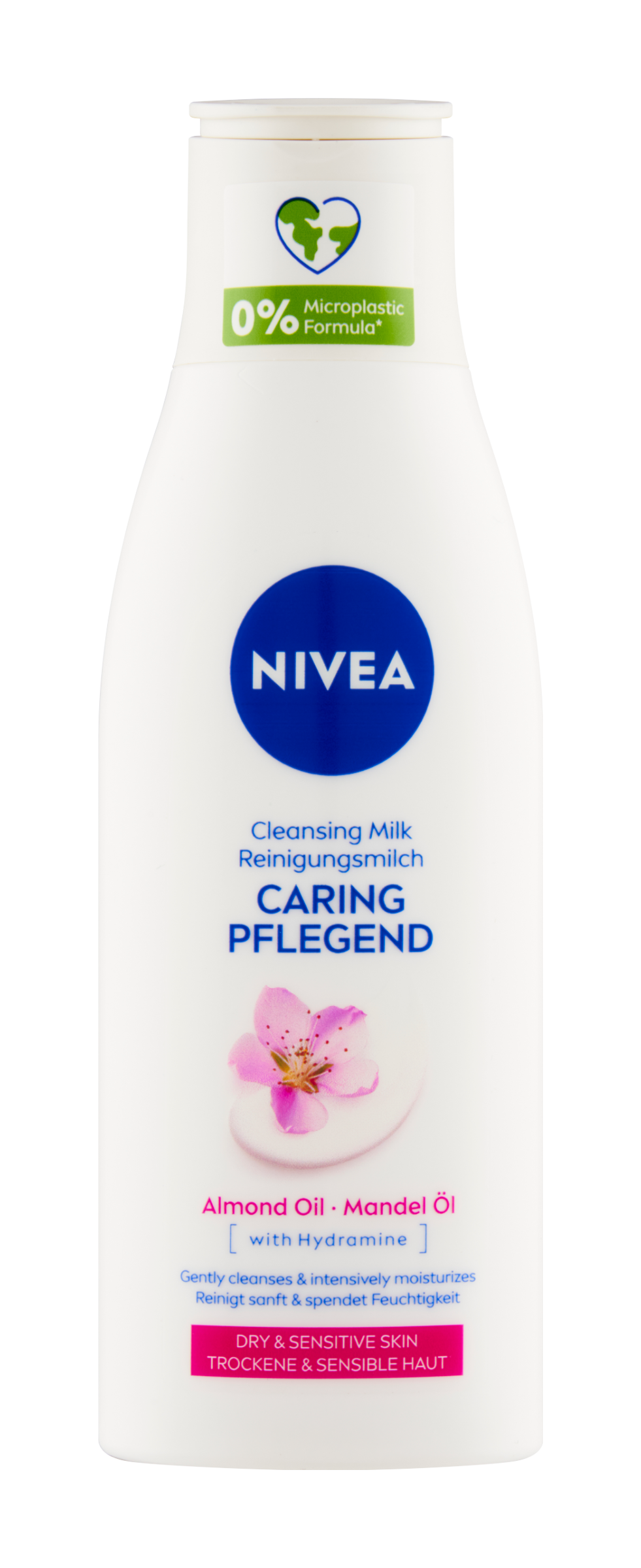 Nivea® Pečující čisticí pleťové mléko pro suchou a citlivou pleť jemně čistí a odstraňuje make-up a řasenku. Pečuje o pleť, zjemňuje ji a intenzivně hydratuje. Složení bez mikroplastů dle definice UNEP.