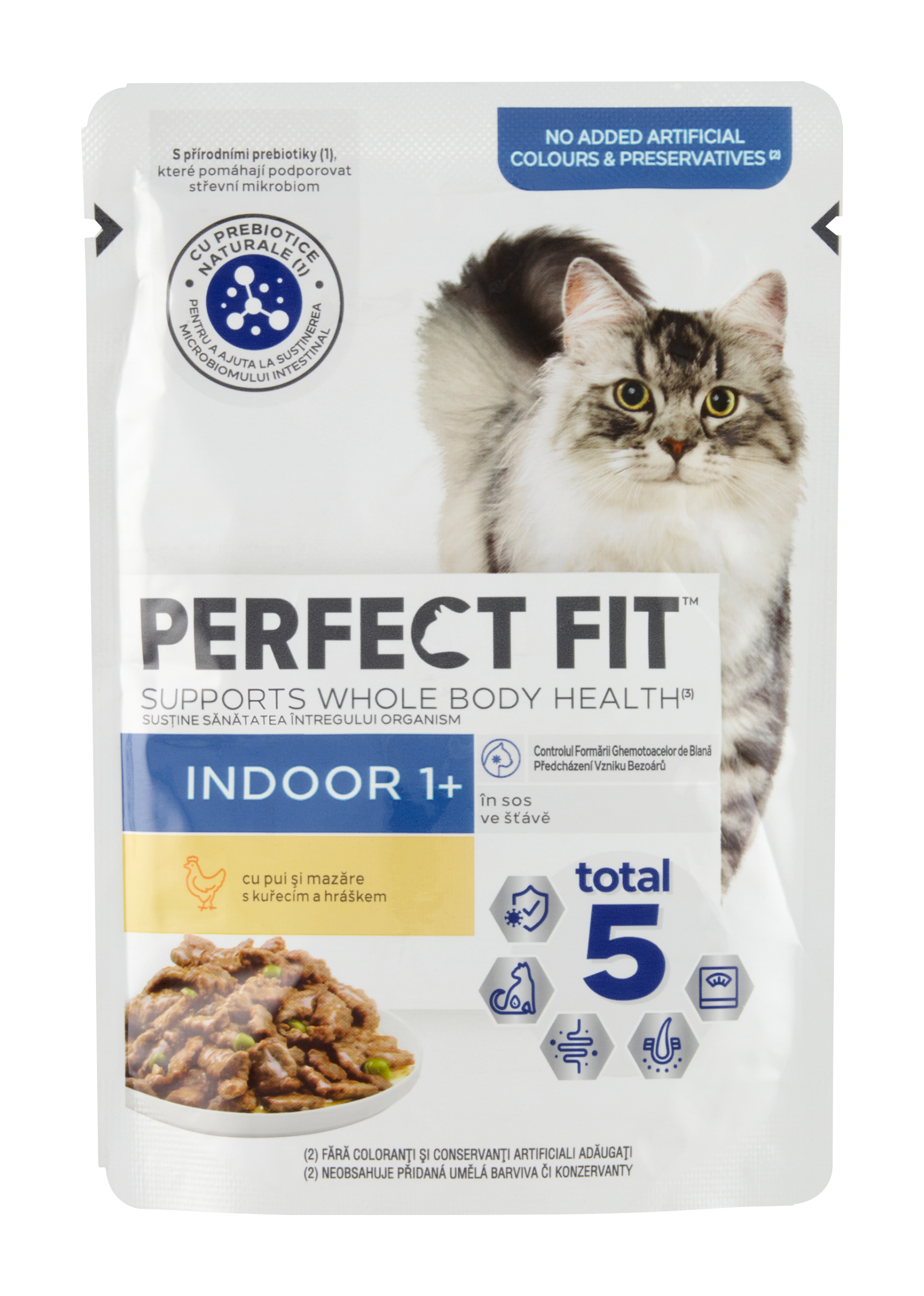 Doporučené dávkování: Kočka o hmotnosti 3 kg potřebuje 2 - 2 ½ kapsičky denně, kočka o hmotnosti 4 kg potřebuje 2 ½ - 3 kapsičky denně, kočka o hmotnosti 5 kg potřebuje 3 - 3½ kapsičky denně. 1 kapsičku můžete nahradit 20 g suchého krmiva Perfect Fit. Úhrn kalorií se počítá z pochoutek. Přizpůsobte dávku krmiva potřebám vaší kočky. Nabídněte čerstvou pitnou vodu. Podávejte při pokojové teplotě, přebytek krmiva uchovávejte v chladu a spotřebujte do 2 dní.
