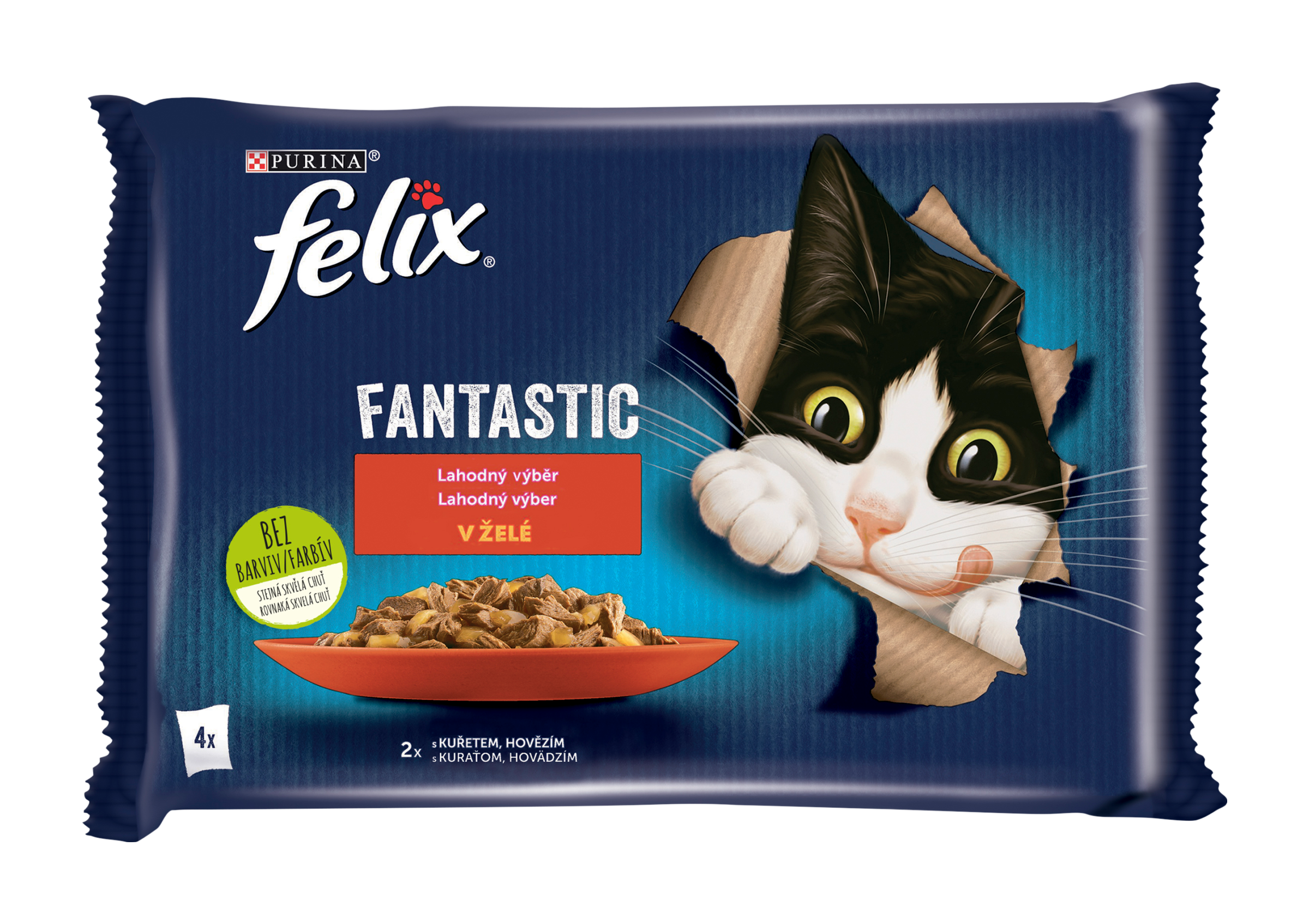 Kompletní krmivo pro dospělé kočky FELIX® Fantastic je řada neodolatelných krmiv, která vypadají, voní a chutnají tak lahodně, jako jídlo, které byste sami uvařili. Každá receptura, vyrobená z kvalitních surovin, obsahuje křehké kousky v želé, aby se vaše kočka mohla do chutného krmiva pořádně zakousnout! Zároveň jsou zdrojem omega-6 mastných kyselin a mají správnou kombinaci vitamínů, aby udržely vaši kočku plnou energie a připravenou k uličnictví! Jsou plná dobrot a uspokojí 100 % denních potřeb vaší kočky, když jsou podávána podle krmného návodu. To není všechno! FELIX Fantastic je dostupný v široké řadě lahodných receptur ve šťavnatém želé, aby každý den uspokojil lásku vaší kočky po rozmanitosti. Opravdu chutnají tak dobře, jak vypadají! FELIX je prostě neodolatelný! 100% kompletní a vyvážené Vitamíny D a E Zdroj omega-6 mastných kyselin, bez přidaných umělých konzervantů.