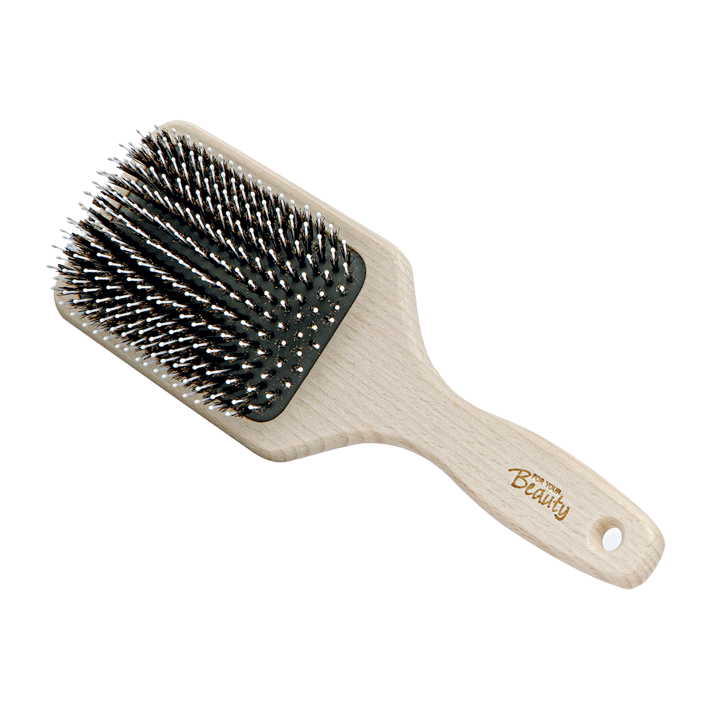 Dopřejte svým vlasům kvalitní péči s kartáčem od značky for your Beauty. Čistě přírodní štětiny kartáče zanechávají vaše vlasy dokonale upravené a hedvábně lesklé. Zaoblené hroty naopak vlasy precizně rozčešou a zároveň dopřejí příjemnou masáž i pokožce hlavy. Kartáč na vlasy je vhodný pro všechny délky a typy vlasů a zvláště se doporučuje pro dlouhé a silné vlasy.
