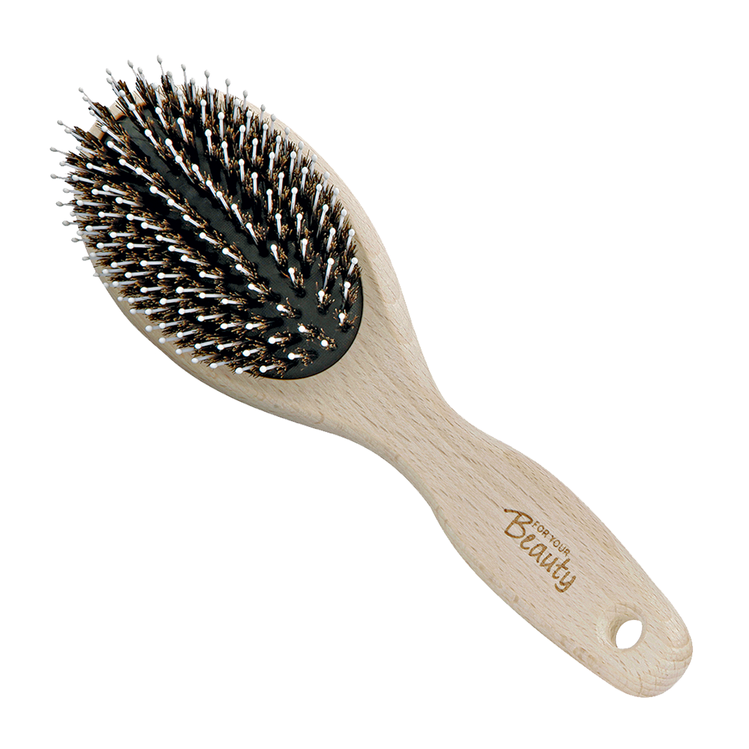 Dopřejte svým vlasům dokonalou péči s kvalitním hřebenem od značky for your Beauty. Čistě přírodní štětiny kartáče zanechávají vaše vlasy dokonale upravené a hedvábně lesklé. Zaoblené hroty naopak vlasy precizně rozčešou a zároveň dopřejí příjemnou masáž i pokožce hlavy. Tento kartáč na vlasy je vhodný pro všechny délky a typy vlasů.