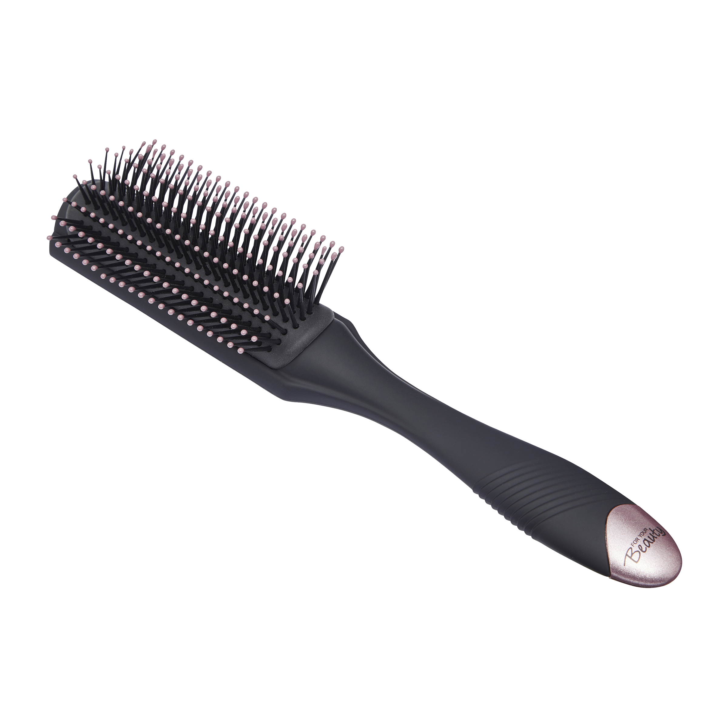 Plastové štětiny jsou obohaceny turmalínovým práškem. Turmalín je vysoce kvalitní drahokam, který při rozčesávání vlasů zajišťuje ionizační účinek, který má antistatický efekt. Statický náboj vlasů tak lze snížit a optimalizovat jejich upravitelnost. Protiskluzová vložka a ergonomická rukojeť spolu s nízkou hmotností zajišťují pohodlnou manipulaci a pevné uchopení.