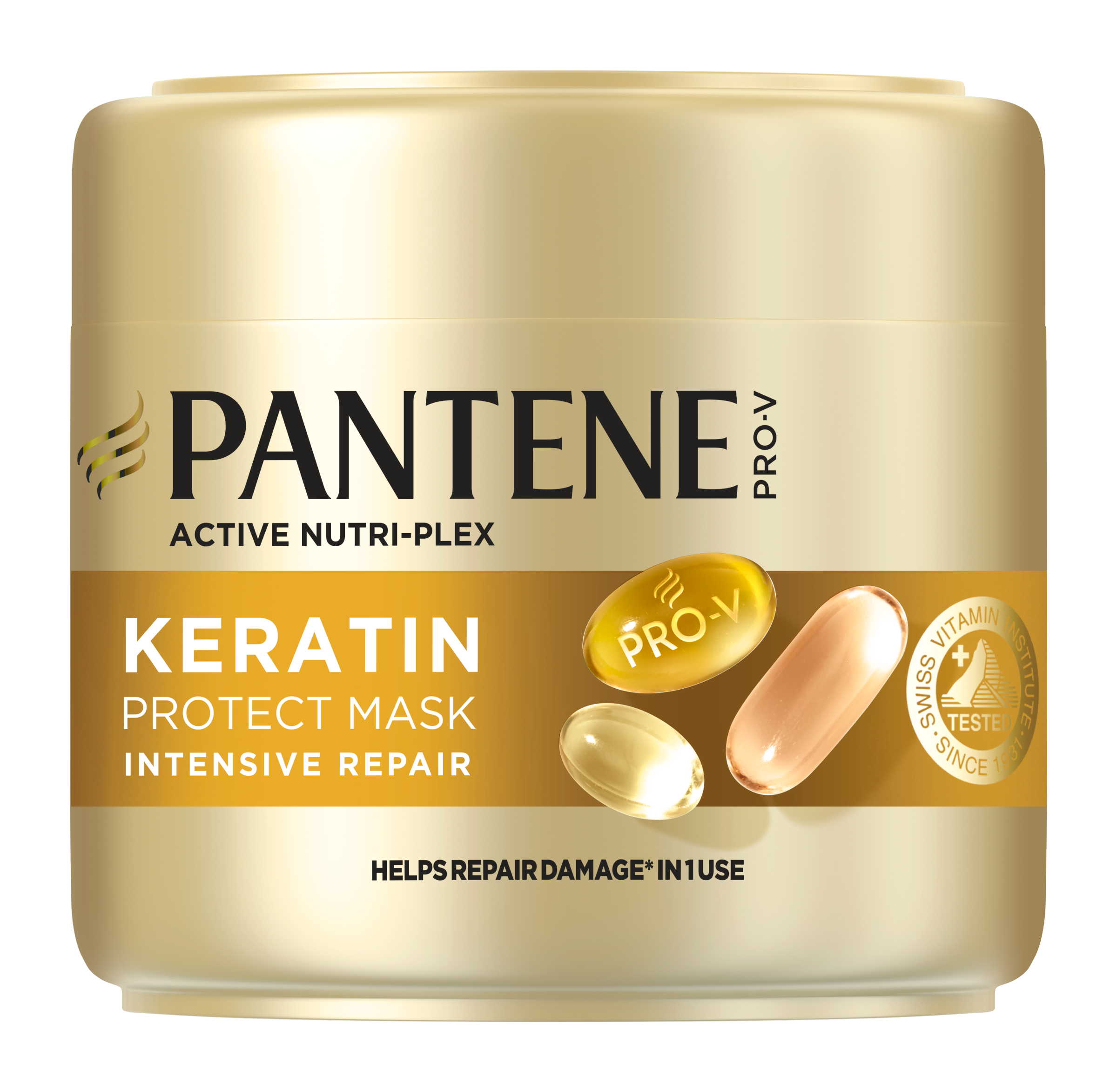 Objevte naši intenzivní masku na vlasy Pantene Intensive Repair Keratin Protect, u které bylo klinicky prokázáno, že napravuje poškození způsobené úpravou účesu již při jednom použití. Tato kúra, vyvinutá s použitím mikrovyživujících látek a přísně testovaná institutem Swiss Vitamin Institute, nabízí bezkonkurenční účinnou obnovu. Složení obohacené o naši recepturu PRO-V a posílené technologií ACTIVE NUTRI-PLEX obsahuje o 50 % více látek* chránících vazby, a posiluje tak vaše vlasy od kořínků až ke konečkům. Dopřejte si požitek z posílených** a vyživených kadeří, a to i v případě suchých a poškozených vlasů. *ve srovnání s předchozím složením **odolnost proti poškození způsobenému úpravou účesu