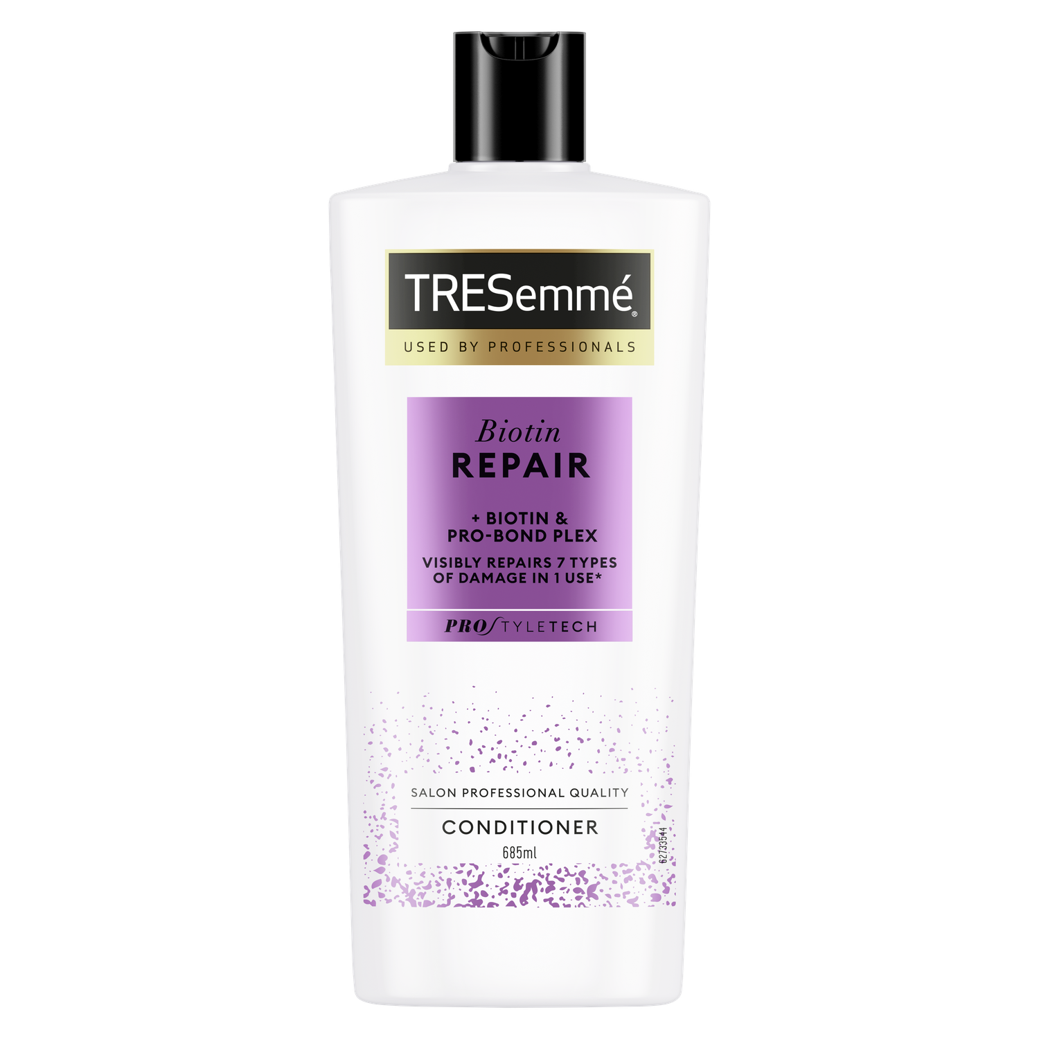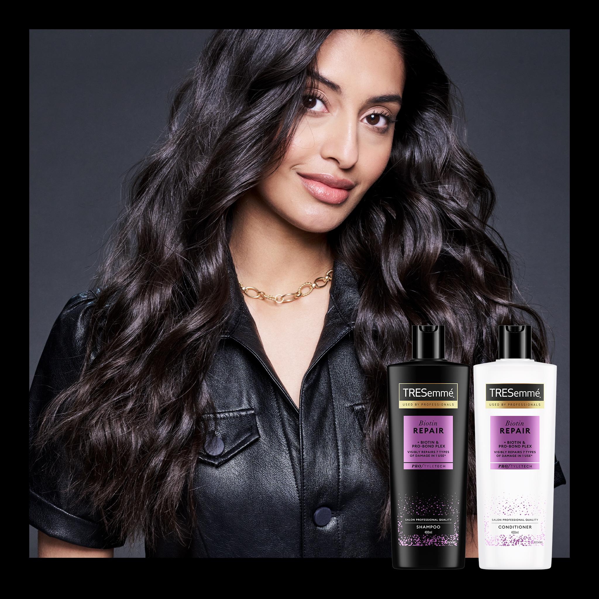 Vaše vlasy nemusí být dokonalé, ale můžou dosáhnout své nejlepší formy. Předcházejte jejich poškození s naší nejpokročilejší řadou Biotin Repair. Tato řada se postará o viditelný rozdíl v péči o vlasy díky speciální technologii Pro-Bond Plex, která poskytne vlasům štít a ochrání je tak, aby zůstaly silné a vyživené. Zabraňuje totiž oslabení, lámání, vysušení i třepení konečků. Dokáže opravit prameny poškozené barvením nebo stylingem a pomáhá vlasům rychleji se vrátit do formy. Díky tomu tato řada napomáhá předcházet problémům a chrání vlasy až před 7 typy poškození.* TRESemmé je nositelem PETA certifikace a netestuje na zvířatech.