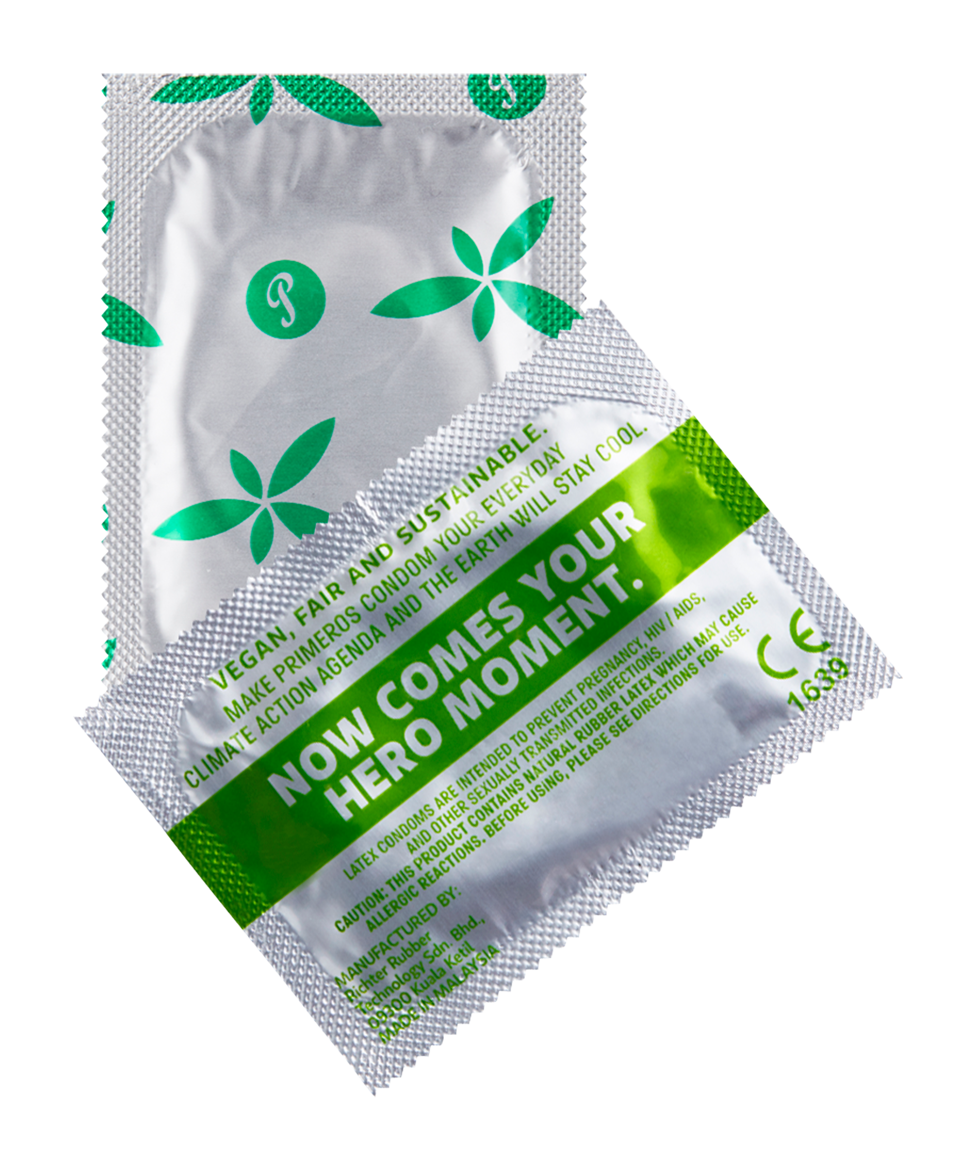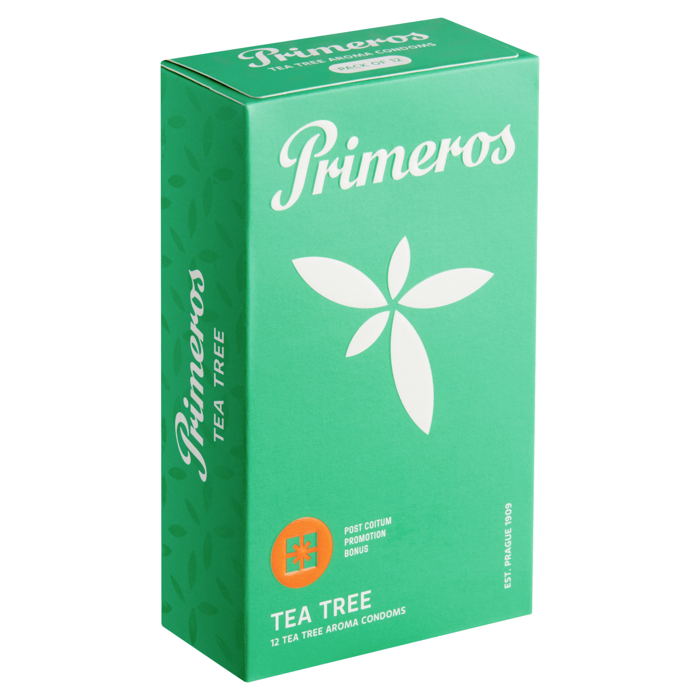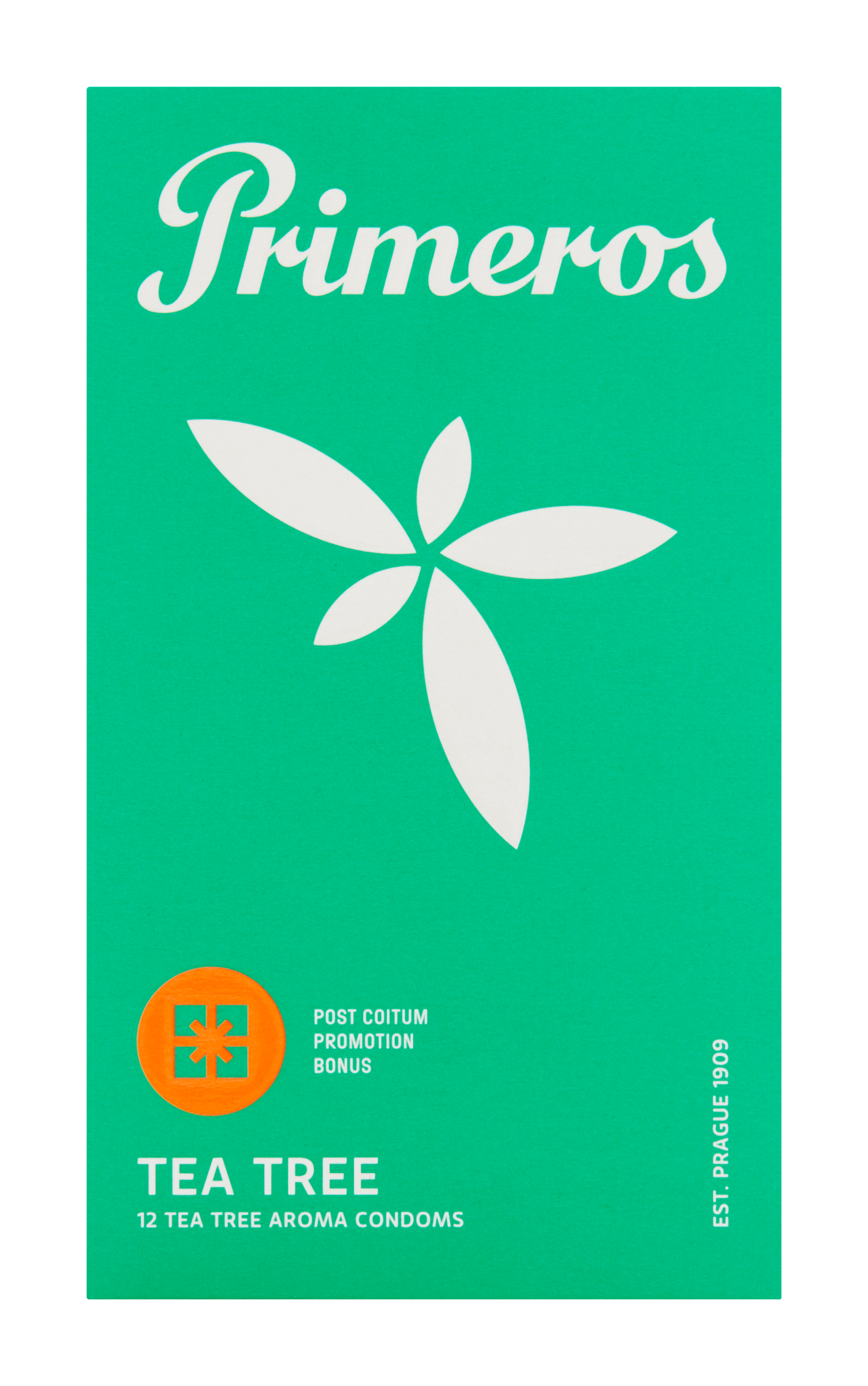 PRIMEROS TEA TREE — Vítej v džungli Holka, které nevadí vyspat se pod širákem nebo s někým, kdo se jí líbí. Nosí s oblibou bavlněný trička, ale doma chodí pořád nahá. Poslouchá, co jí říká její tělo. Když má hlad, utrhne si něco ze stromu. Když si chce vrznout, jde do karavanu za svým klukem. Takhle jednoduchý to s ní je. POST COITUM WEAR — Každý kondom má svoje spřízněné tričko z bio bavlny, které rozhodně nebudeš chtít nosit jenom „post coitum“. Chceš ho? Za peníze se koupit nedá. Můžeš ho dostat, když budeš stírat políčka v soutěži na multibalení. Je to něco jako automaty, ale na férovku. Najdi 3x stejný symbol a získej Post Coitum tričko jako bonus. Pozor: když setřeš víc než tři pole, vypadáváš ze hry.