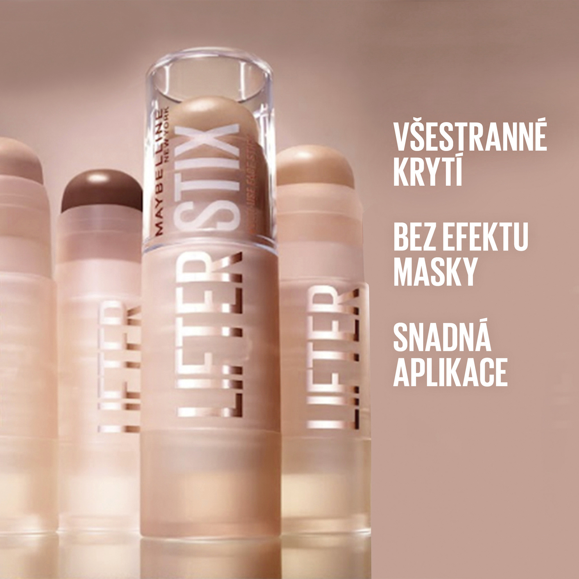 Konturovací tyčinka Lifter Stix 20 od Maybelline umožňuje snadno konturovat rysy obličeje a dodat pleti svěží, přirozeně projasněný vzhled. Díky krémové textuře se bez námahy roztírá a perfektně splývá s pletí, aniž by vytvářela fleky nebo zatěžující efekt masky. Ideální je jak pro jemné zvýraznění, tak pro výraznější konturování. Nezalézá do vrásek a nevysušuje pleť, takže se hodí i pro každodenní použití. S těmito tyčinkami kryjete, tvarujete a rozjasňujete.