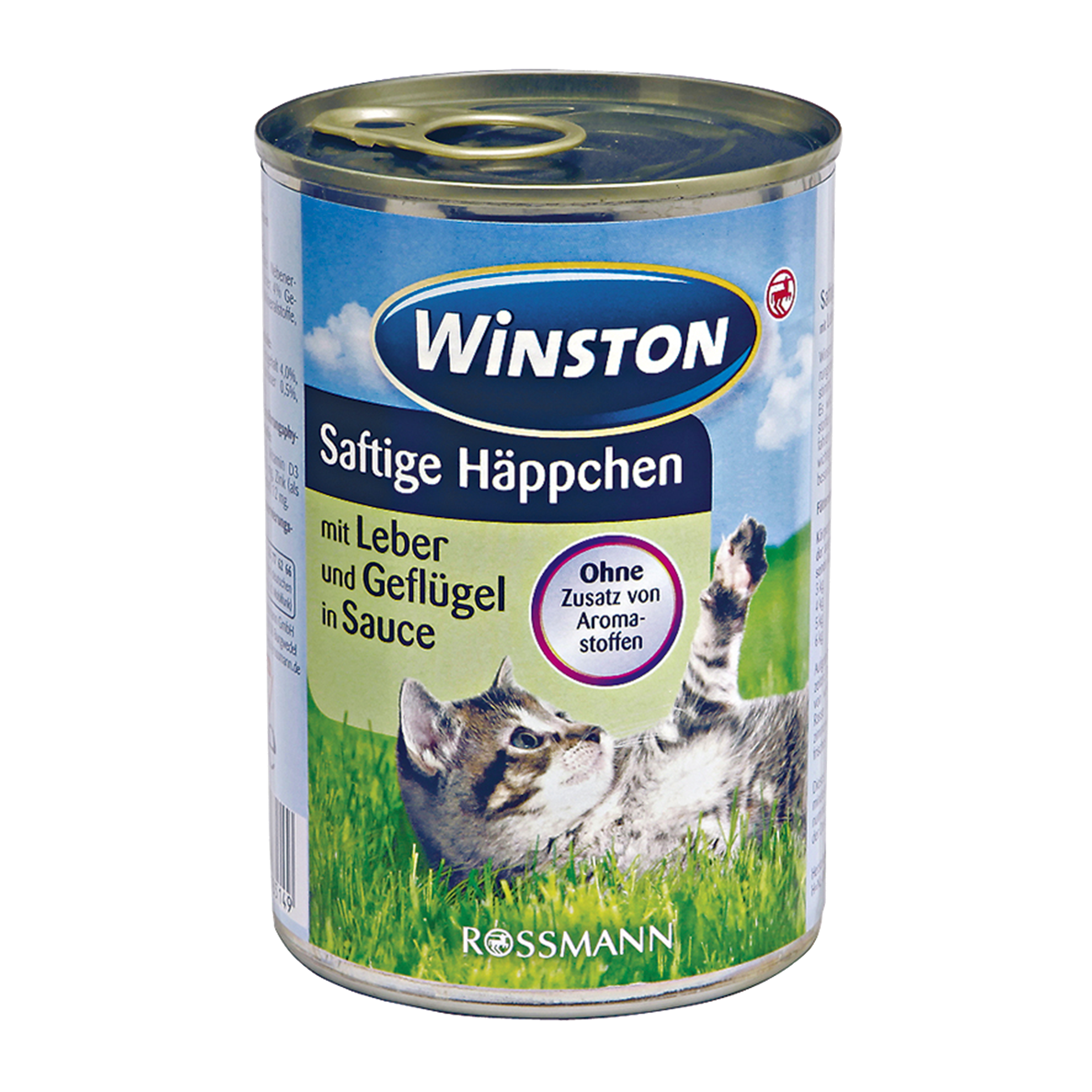 Maso a výrobky živočišného původu (z toho 4 % játra, z toho 4 % drůbeží), obiloviny, minerální látky, vedlejší výrobky rostlinného původu (jablečný extrakt).