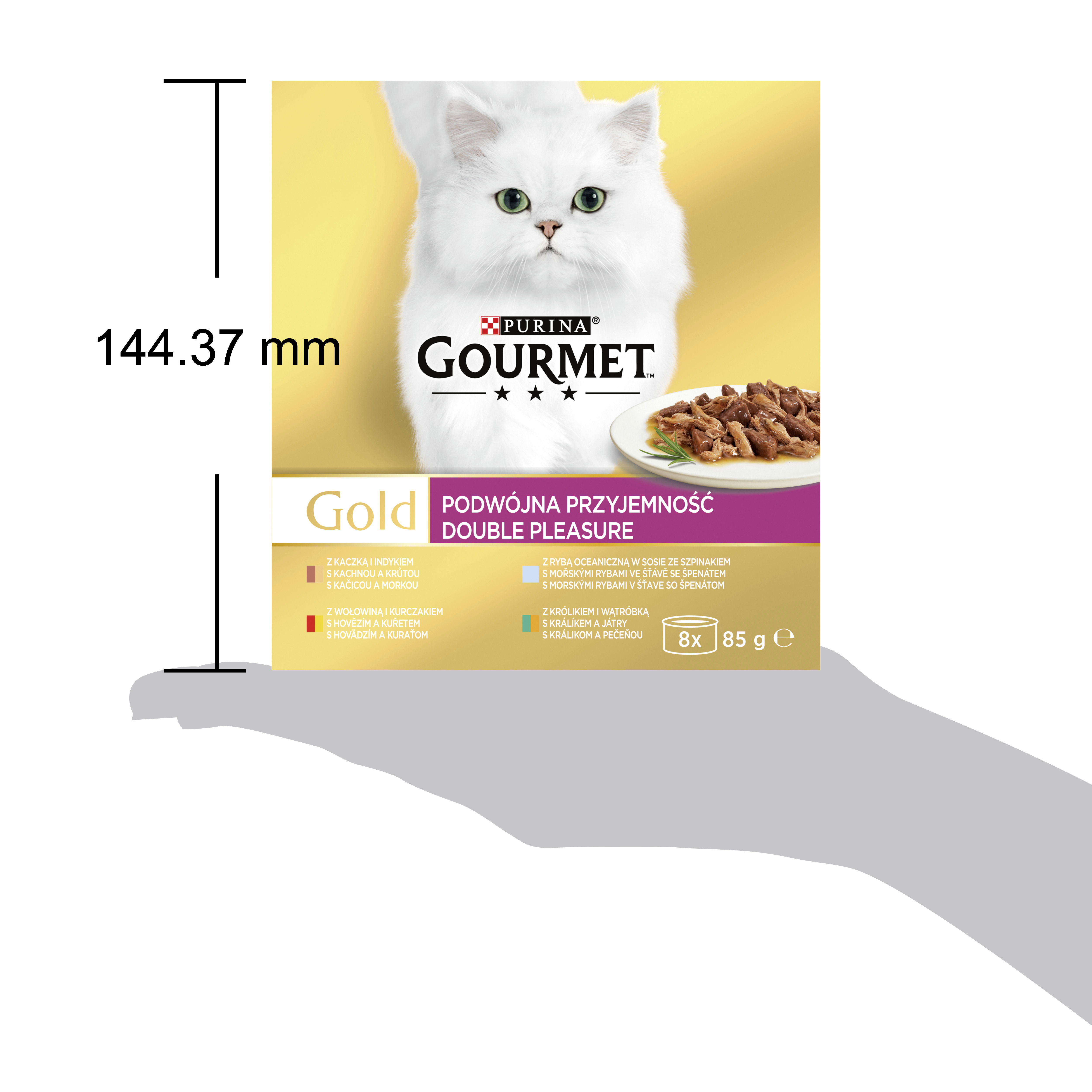 GOURMET Gold Double Pleasure obsahuje křehké kousky a šetrně uvařené jemné plátky: ideální spojení dvou různých textur v jedné receptuře tak, aby potěšilo vaši kočku rozmanitou chutí i konzistencí. Všechna krmiva GOURMET Gold jsou vyrobena z vysoce kvalitních surovin a jsou bez přidaných barviv a umělých konzervantů.