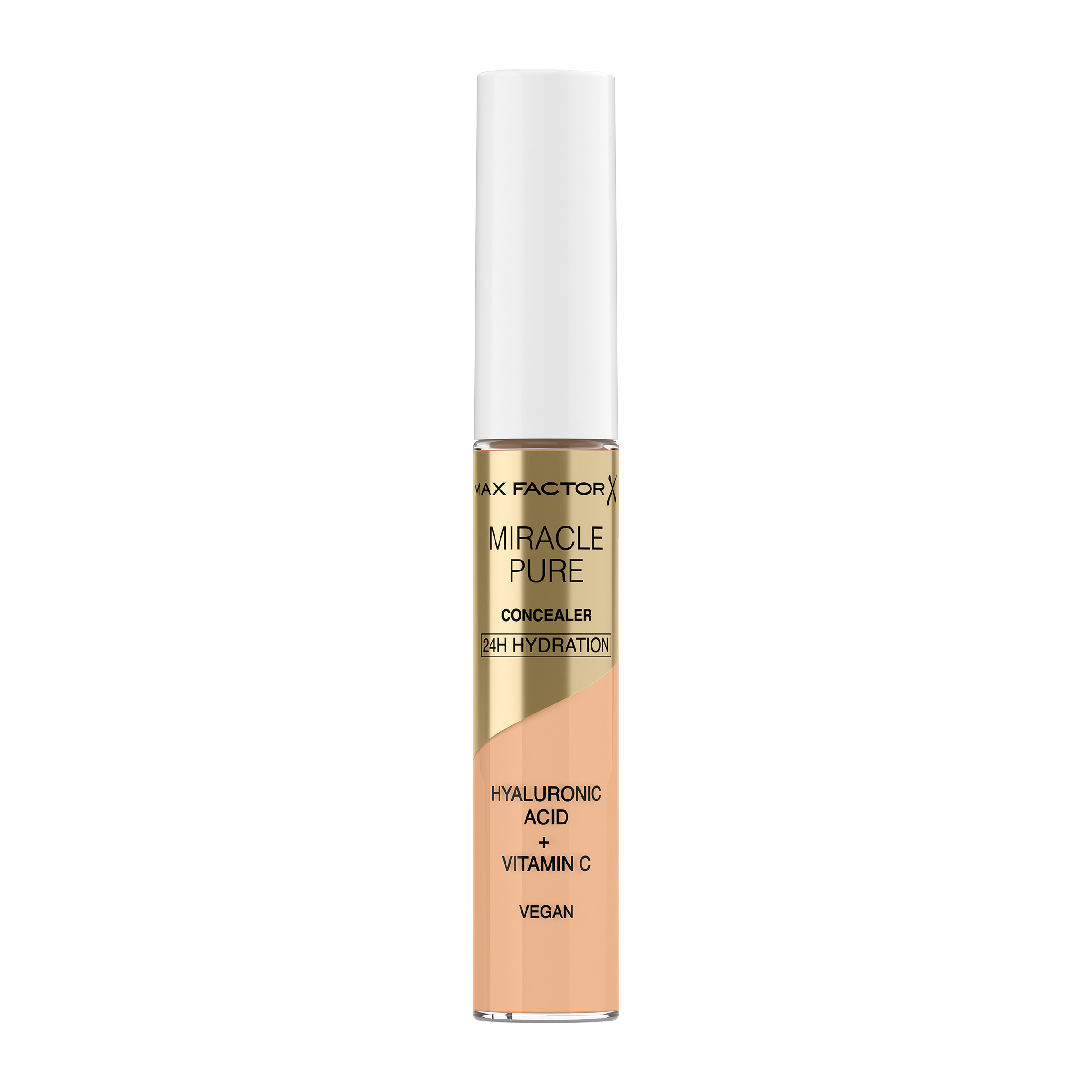 Víceúčelový korektor Miracle Pure kryje nedostatky a zároveň pečuje o pleť během nošení, navíc díky svému inovativnímu a lehkému složení nabízí až 24 hodinovou hydrataci. Složení je obohaceno o pečující ingredience, jako je kyselina hyaluronová, vitamín C a peptidy. Korektor byl navržen tak, aby dokonale splynul s pletí celého obličeje, nezanášel jemné linie a vytvářel bezchybný finiš, který vydrží po celý den. Pomůže pleť rozzářit a rozjasnit a navíc redukovat viditelnost nežádoucích textur a vrásek. Korektor Miracle Pure od Max Factor byl vyroben z recyklovaných materiálů a je vhodný i pro citlivou pokožku díky svému flexibilnímu aplikátoru, který je jemný, ale precizní. Klinicky a dermatologicky testováno.