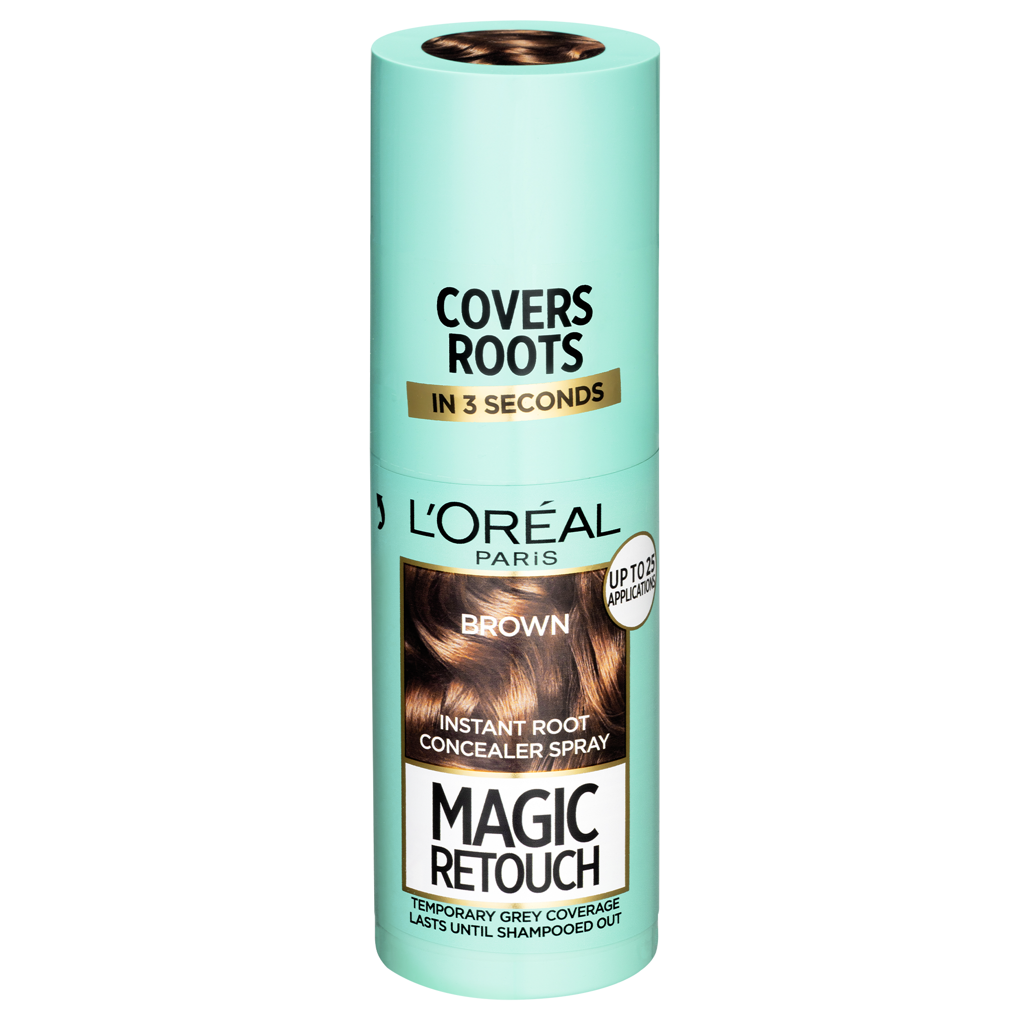 Sprej na vlasy pro okamžité zakrytí odrostů a šedin L’Oréal Paris Magic Retouch je dočasný barevný sprej v několika přírodních odstínech, který v jediném kroku překryje šedivé či barevné odrosty. Tajemstvím spreje je barevný pigment, který dokonale přilne k vlasu a bezpečně vydrží až do dalšího umytí vlasů šamponem. Díky spreji L’Oréal Paris Magic Retouch dosáhnete okamžitého překrytí šedin za několik málo vteřin. Po aplikaci zjemňuje Magic Retouch barevný přechod vlasů a k vlasu dokonale přilne. Zároveň rychle zasychá a dodává vlasům jemnou texturu.