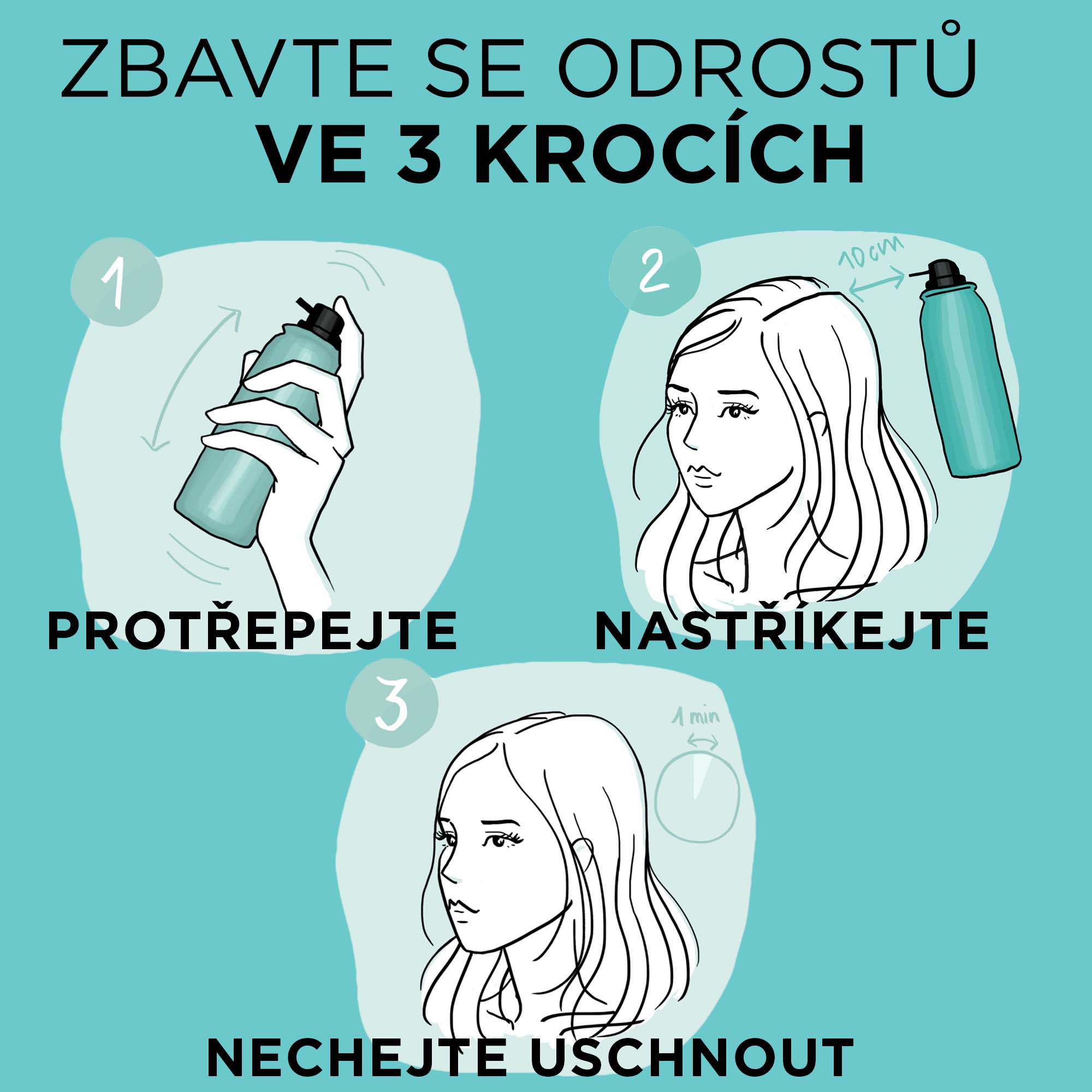 Před použitím protřepejte. Držte produkt přímo. Aplikujte na suché, učesané vlasy. Aplikujte na šedivé vlasy, odrosty nebo kontury ze vzdálenosti cca 10 cm od vlasů, stačí v malém množství. Na závěr můžete vlasy a pokožku ještě jemně promnout prsty pro přirozenější efekt. Upravte vlasy a vytvořte konečný styling.