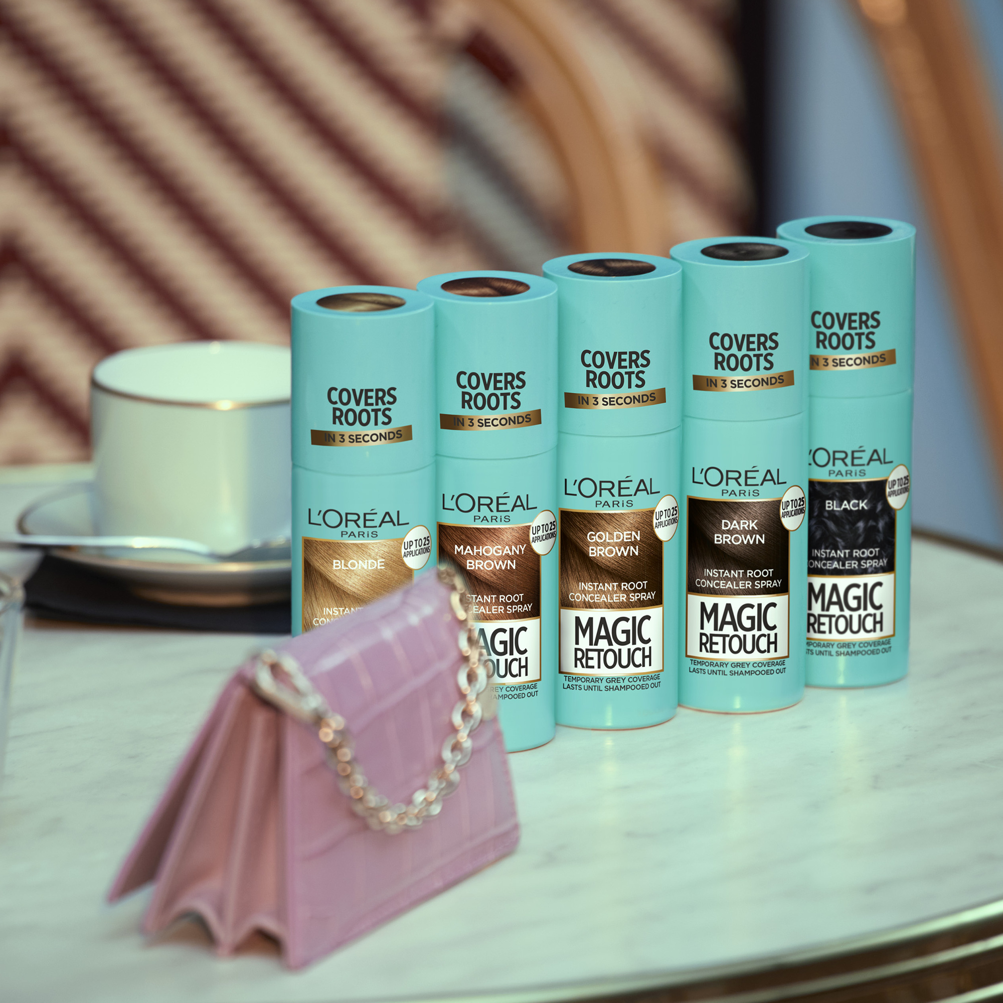 Sprej na vlasy pro okamžité zakrytí odrostů a šedin L’Oréal Paris Magic Retouch je dočasný barevný sprej v několika přírodních odstínech, který v jediném kroku překryje šedivé či barevné odrosty. Tajemstvím spreje je barevný pigment, který dokonale přilne k vlasu a bezpečně vydrží až do dalšího umytí vlasů šamponem. Díky spreji L’Oréal Paris Magic Retouch dosáhnete okamžitého překrytí šedin za několik málo vteřin. Po aplikaci zjemňuje Magic Retouch barevný přechod vlasů a k vlasu dokonale přilne. Zároveň rychle zasychá a dodává vlasům jemnou texturu.