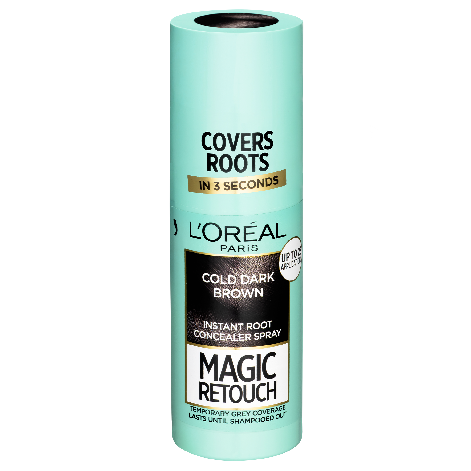 Sprej na vlasy pro okamžité zakrytí odrostů a šedin L’Oréal Paris Magic Retouch je dočasný barevný sprej v několika přírodních odstínech, který v jediném kroku překryje šedivé či barevné odrosty. Tajemstvím spreje je barevný pigment, který dokonale přilne k vlasu a bezpečně vydrží až do dalšího umytí vlasů šamponem. Díky spreji L’Oréal Paris Magic Retouch dosáhnete okamžitého překrytí šedin za několik málo vteřin. Po aplikaci zjemňuje Magic Retouch barevný přechod vlasů a k vlasu dokonale přilne. Zároveň rychle zasychá a dodává vlasům jemnou texturu.