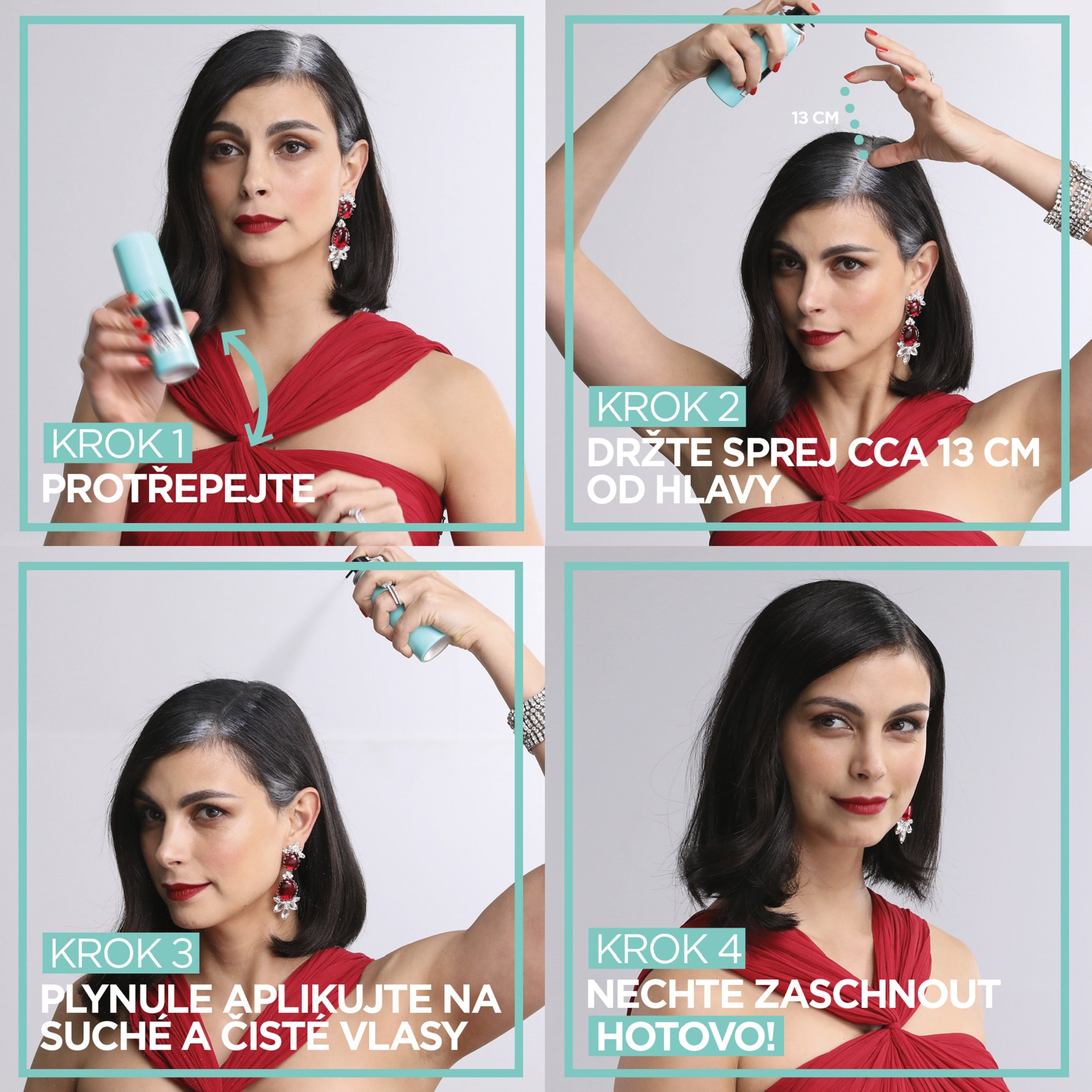 Před použitím protřepejte. Držte produkt přímo. Aplikujte na suché, učesané vlasy. Aplikujte na šedivé vlasy, odrosty nebo kontury ze vzdálenosti cca 10 cm od vlasů, stačí v malém množství. Na závěr můžete vlasy a pokožku ještě jemně promnout prsty pro přirozenější efekt. Upravte vlasy a vytvořte konečný styling.