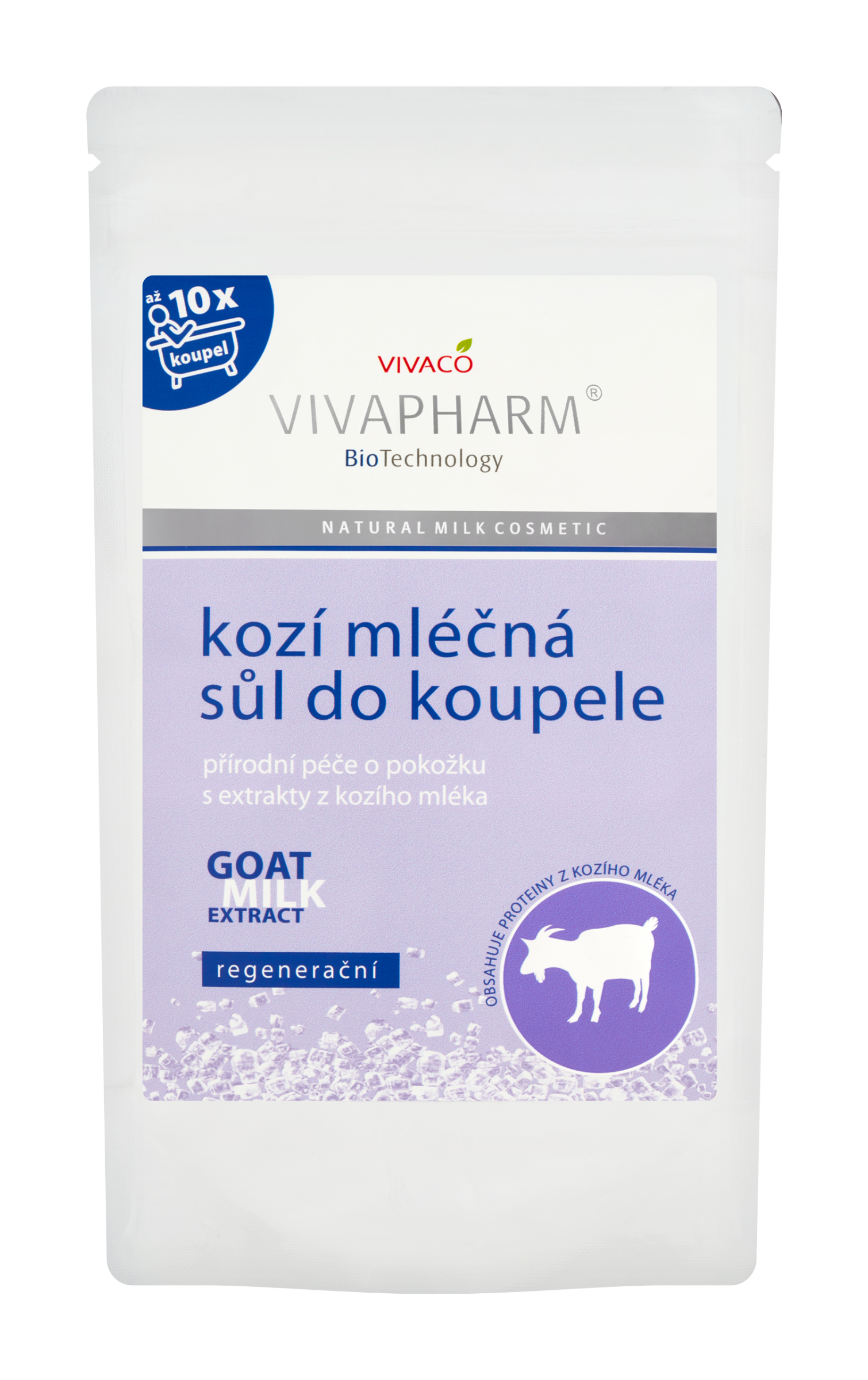 Regenerační kozí mléčná sůl do koupele přirozeně osvěžuje a revitalizuje pokožku, příjemná vůně napomáhá odplavovat únavu a stres. Koupel napomáhá uvolnění po zvýšené fyzické zátěži a odstranění pocitu těžkých nohou. Extrakty z kozího mléka zlepšují kvalitu přecitlivělé a namáhané pokožky se sklonem k vysychání. Má zvláčňující, pečující a vyživující účinky.