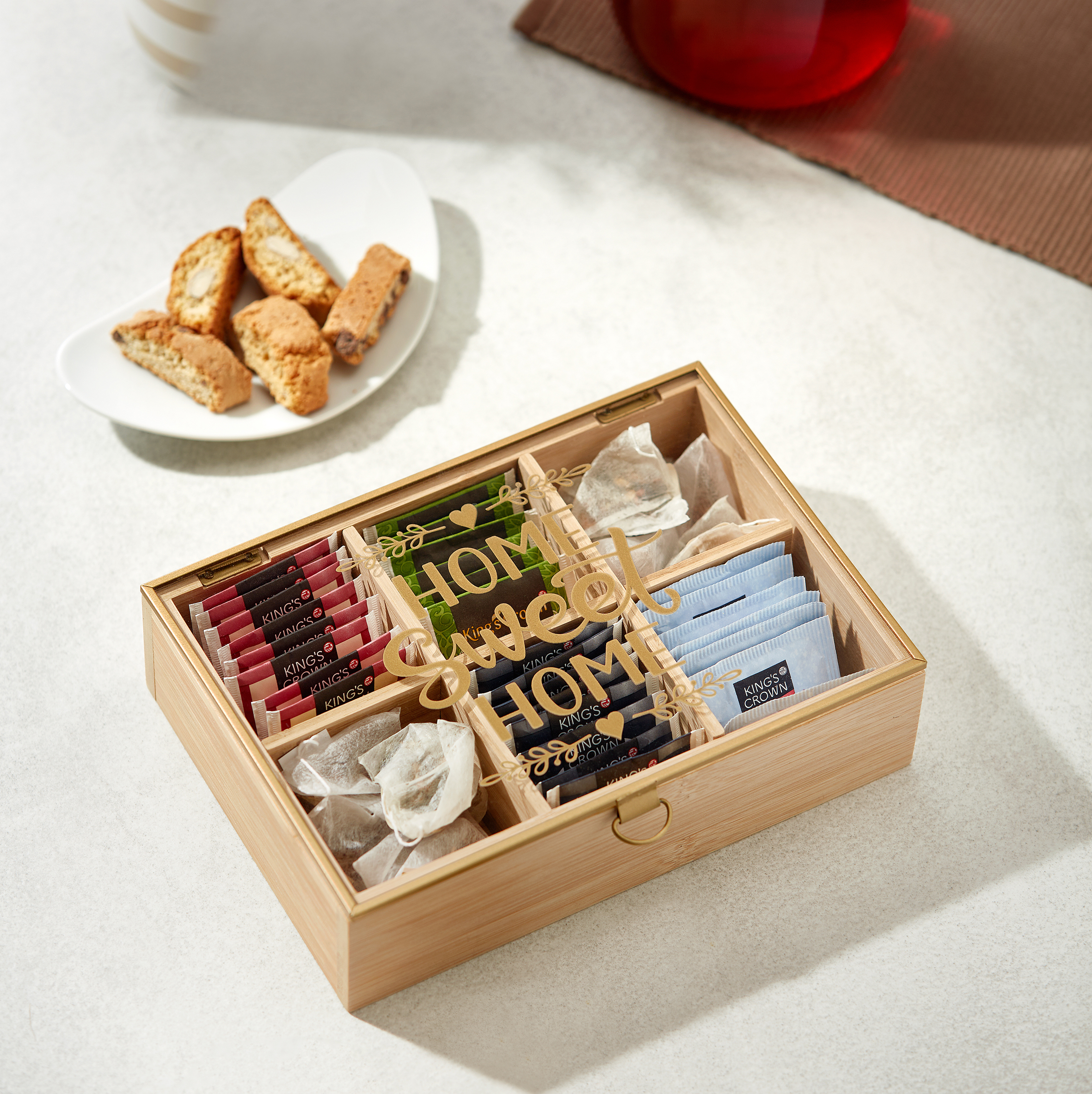 - 6 přihrádek pro přehledné uspořádání čajových sáčků