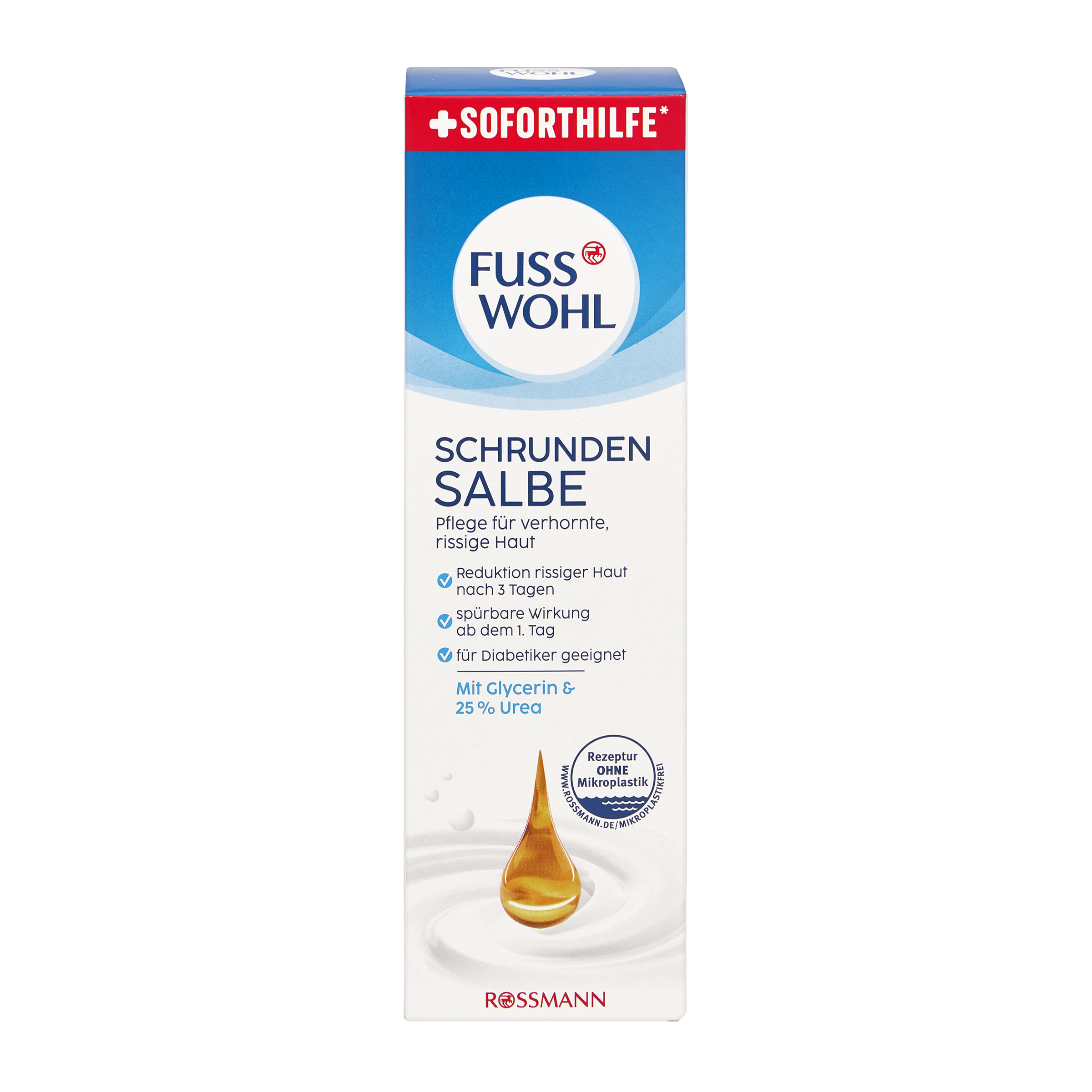 Trápí vás zrohovatělá či popraskaná kůže na nohou? Vyzkoušejte náš krém od značky Fusswohl, který vytváří ochrannou vrstvu, která váže vlhkost v pokožce. S obsahem 25 % urey zlepšuje stav drsné, zrohovatělé a vysušené kůže na patách. Intenzivně pečuje a pomáhá obnovovat popraskané paty a viditelně snižuje praskliny již po 3 dnech. Krém účinkuje dlouhodobě. Kůže je zřetelně jemnější a ošetřená. Vhodný i pro diabetiky.