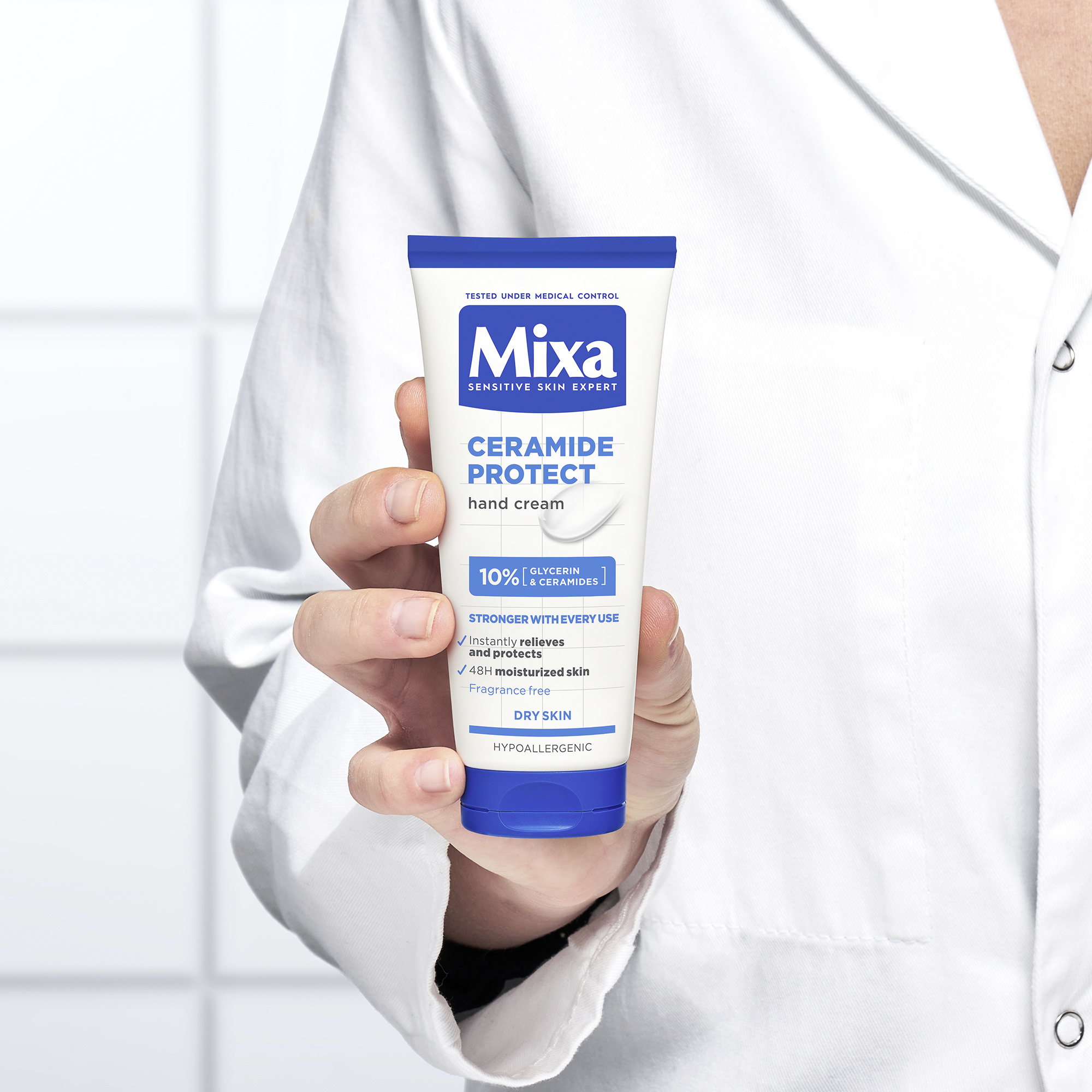 Mixa ochranný krém na ruce pro suchou pokožku. Hypoalergenní složení obohacené o ceramidy a glycerin. Ceramidy posilují ochrannou bariéru pokožky. Glycerin je známý pro své intenzivní hydratační a ochranné vlastnosti.