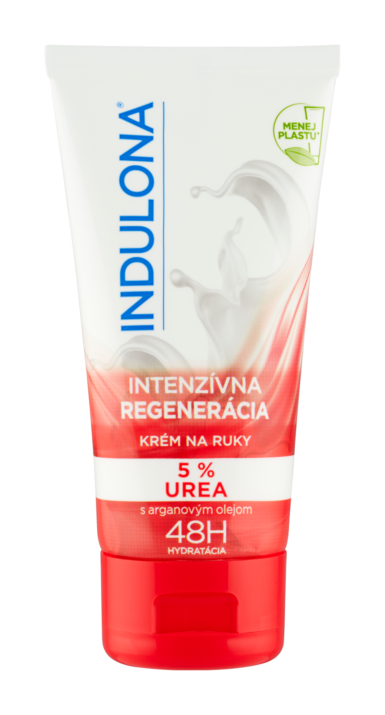 Indulona Krém na ruce intenzivní regenerace je obohacený o 5 % urey, vynikající hydratační látky, která absorbuje a zadržuje vodu. Urea zvyšuje schopnost pokožky udržet přirozenou úroveň hydratace a rehydratuje. Obsažený arganový olej je bohatý na základní živiny a antioxidanty a má protizánětlivé účinky. Krém poskytuje velmi suchým a popraskaným rukám okamžitou a dlouhotrvající hydrataci, až po dobu 48 hodin. Má zklidňující a vyživující účinky, podporuje zdravý vzhled pokožky a zanechává ruce zregenerované a jemné. O 13,7 % méně plastu ve srovnání s předchozím obalem (bez víčka).