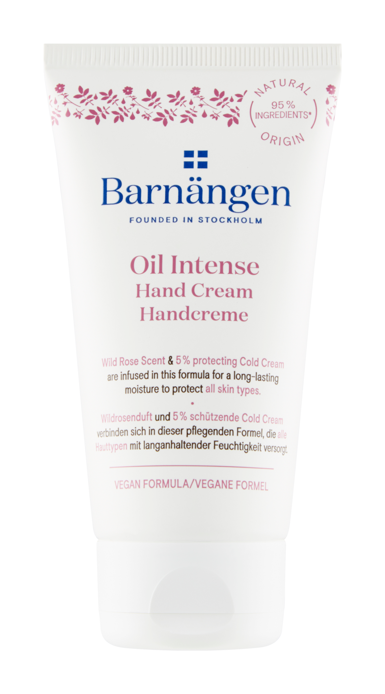 Zažijte náš Oil Intense krém na ruce. Kombinace oleje z divokých růží, které pokrývají švédská vřesoviště a 5 % ochranného Cold Cream v jednom složení, které poskytuje dlouhotrvající hydrataci a pečuje o všechny typy pokožky rukou. - vhodný pro všechny typy pokožky rukou - 95 % ingrediencí přírodního původu vč. vody - obsahuje 5 % ochranné ingredience Cold Cream - obsahuje růžový olej - veganské složení - dermatologicky testováno Jak aplikovat Vmasírujte si tento vyvážený krém na ruce Oil Intense do pokožky rukou pro její hydrataci a opakujte tak často, jak je potřeba. Užívejte si hydratované a chráněné ruce během celého dne. Cold Cream Značka Barnängen ve svých produktech využívá charakteristickou ingredienci Cold Cream, který je receptem našich předků na krásu. Cold Cream je po tisíce let známý tím, že se jedná o vysoce pečující a ochrannou látku pro pokožku – a navíc přináší mnohem lehčí pocit na kůži ve srovnání s čistými oleji. Věděli jste, odkud Cold Cream dostal svoje jméno? Je odvozeno z chladivého, čerstvého a lehkého pocitu, který na pokožce po nanesení zanechává.