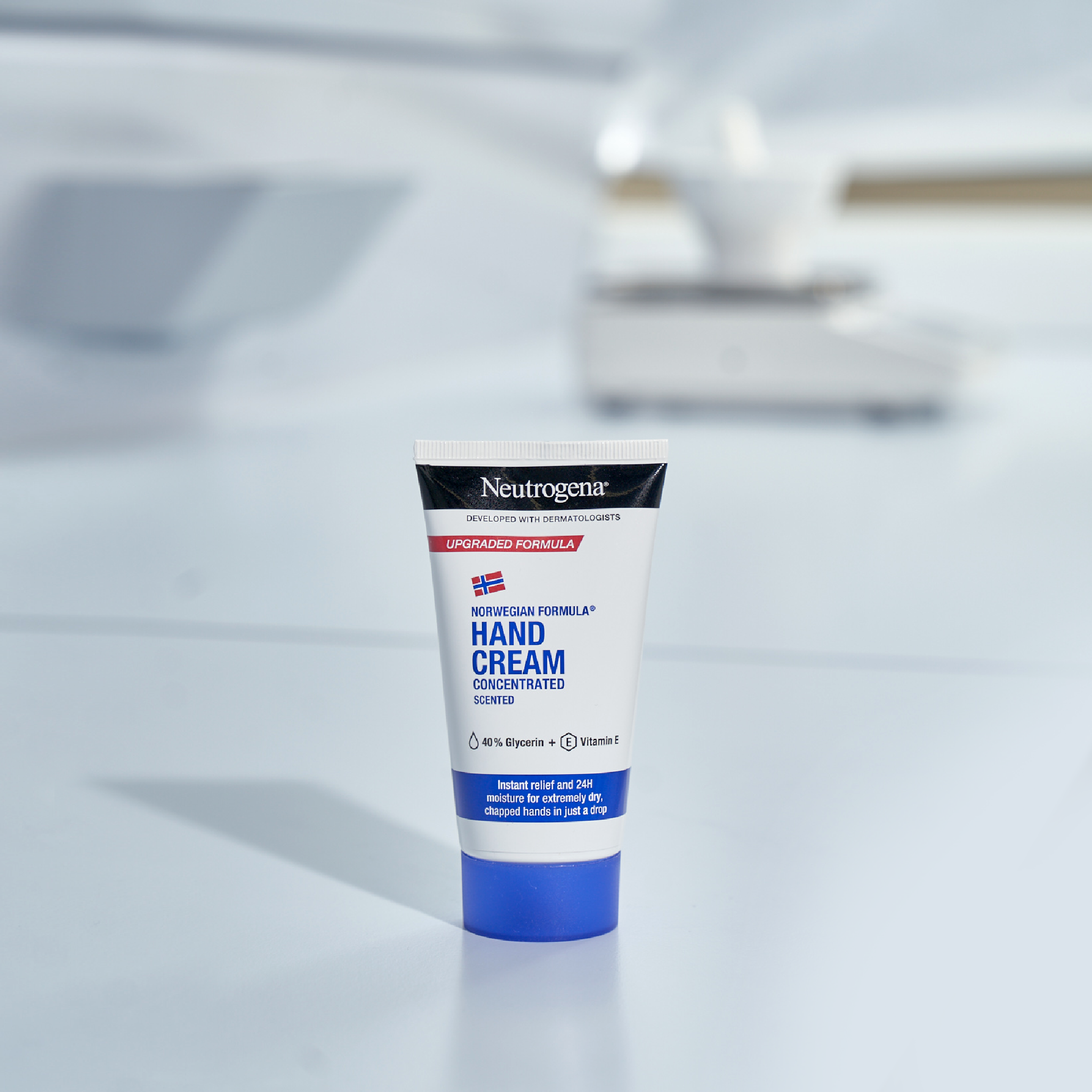 Množství krému o velikosti hrášku nejprve napěňte a poté vetřete do pokožky rukou.