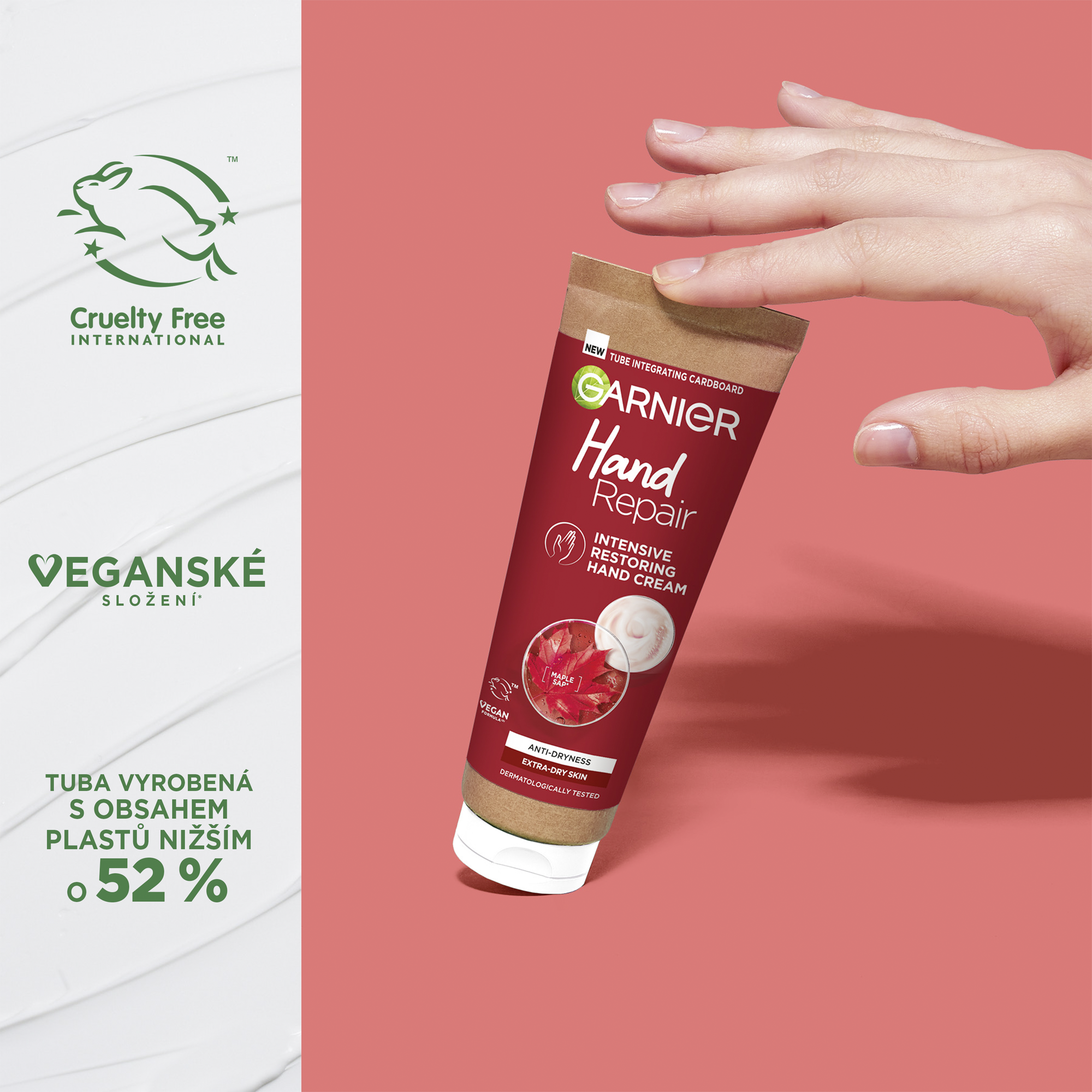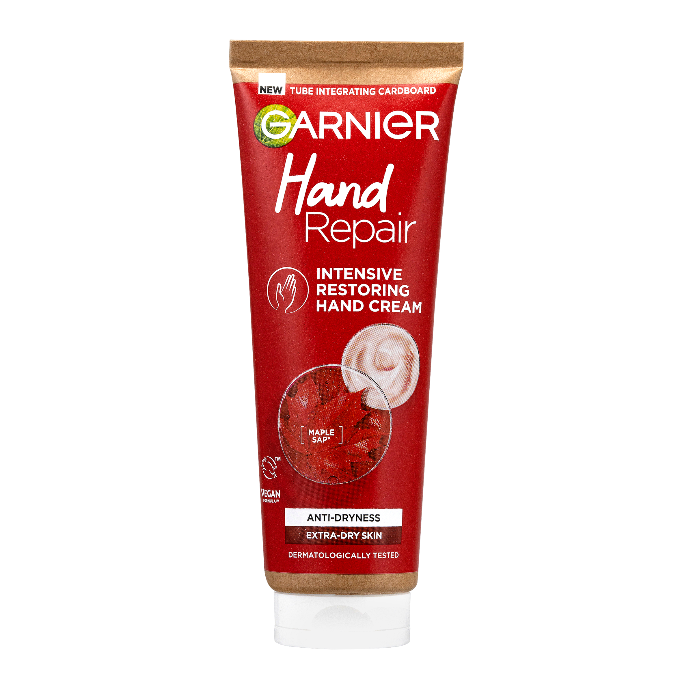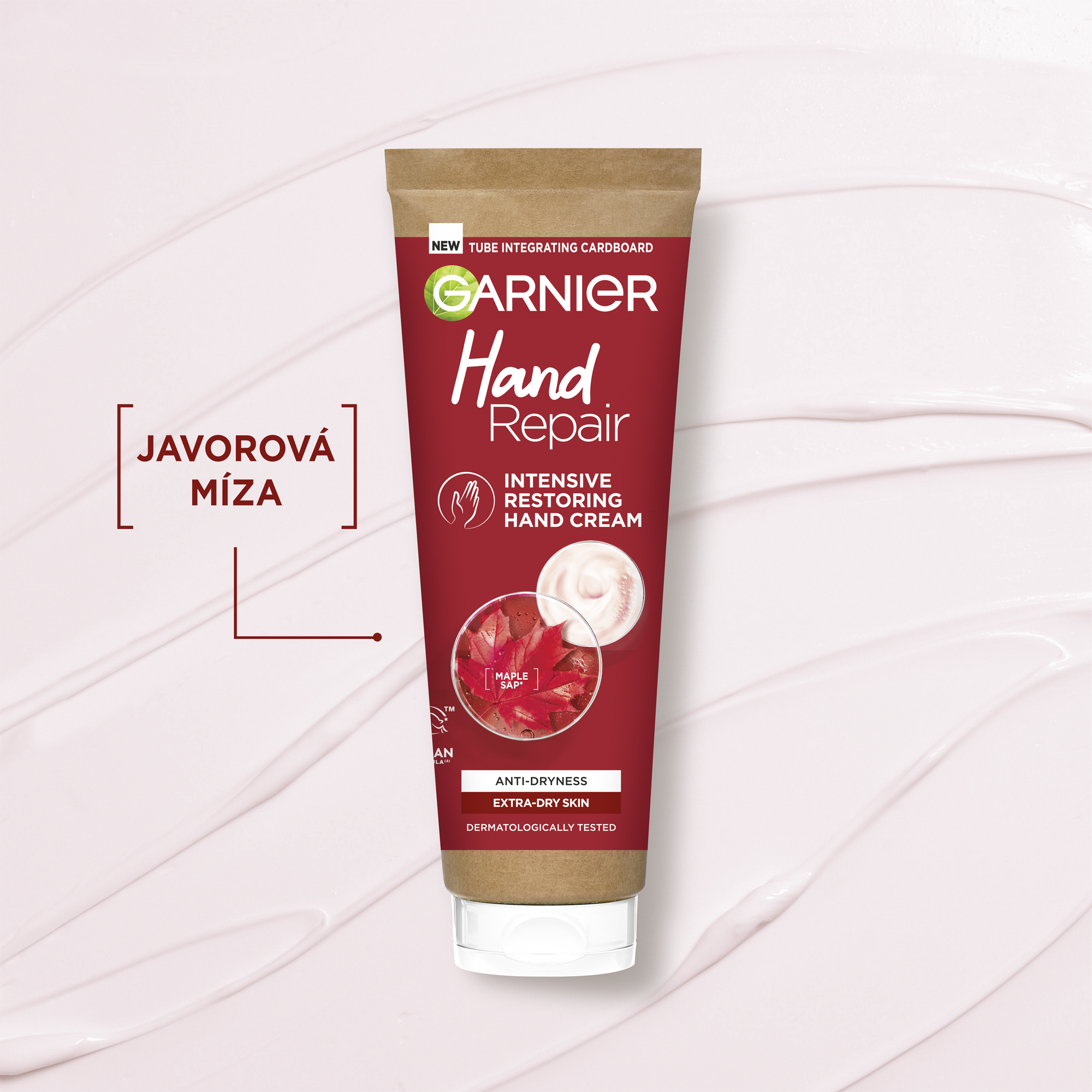 Garnier intenzivní obnovující krém na ruce obohacený o výtažek z javorové mízy poskytuje 48hodinovou hydrataci. Pro velmi suchou pokožku rukou.