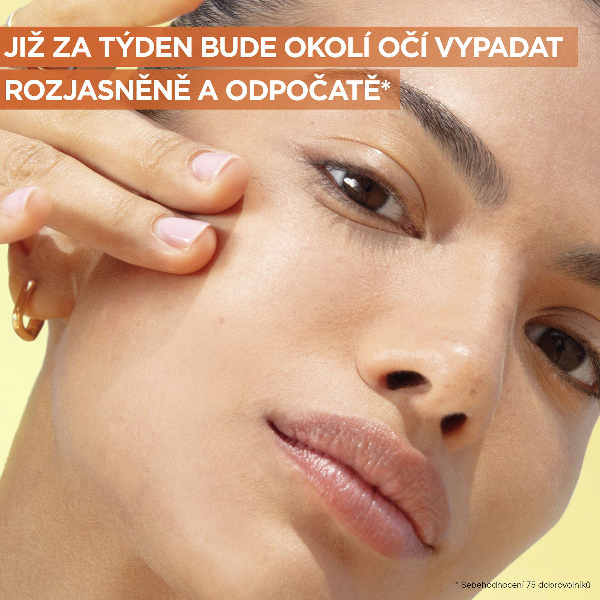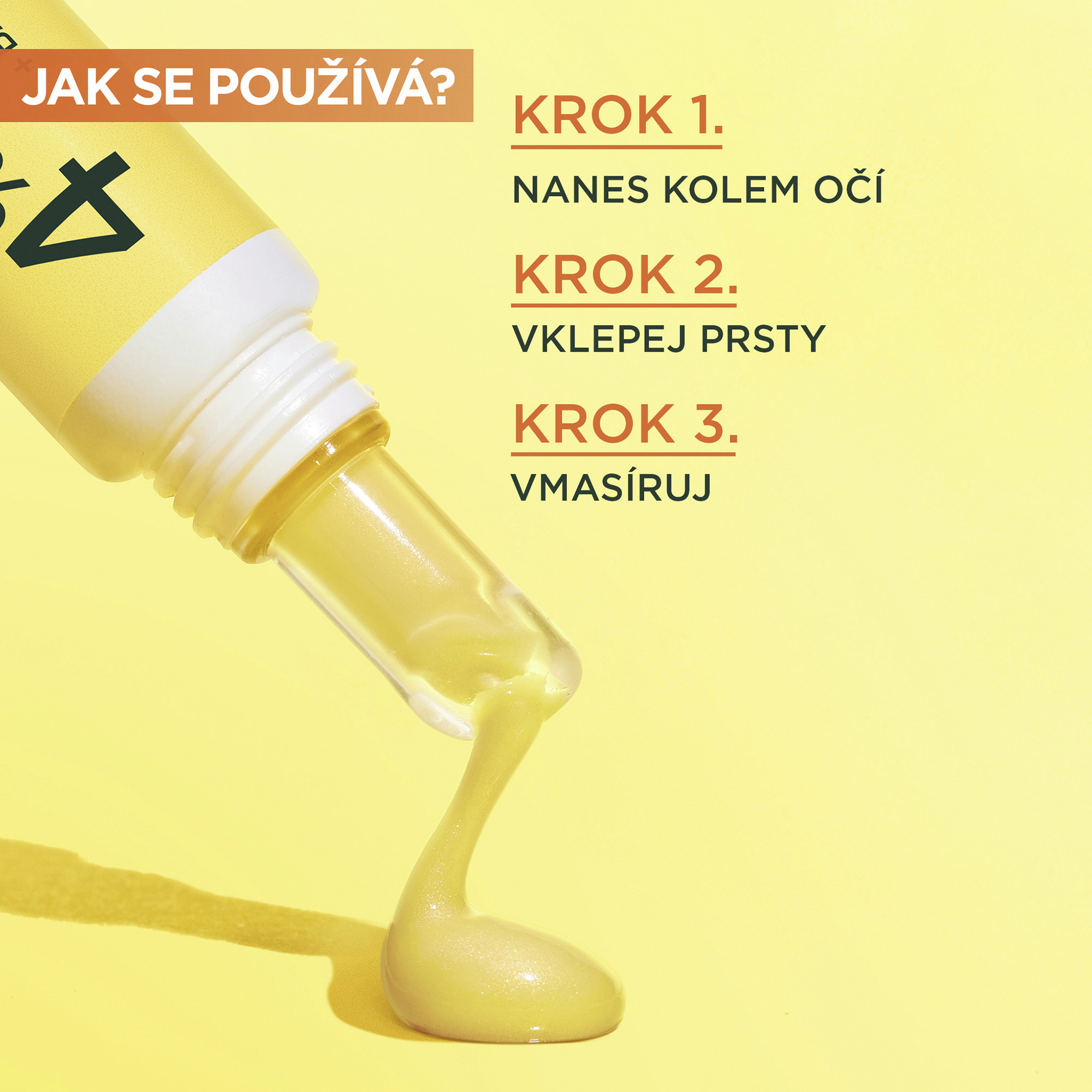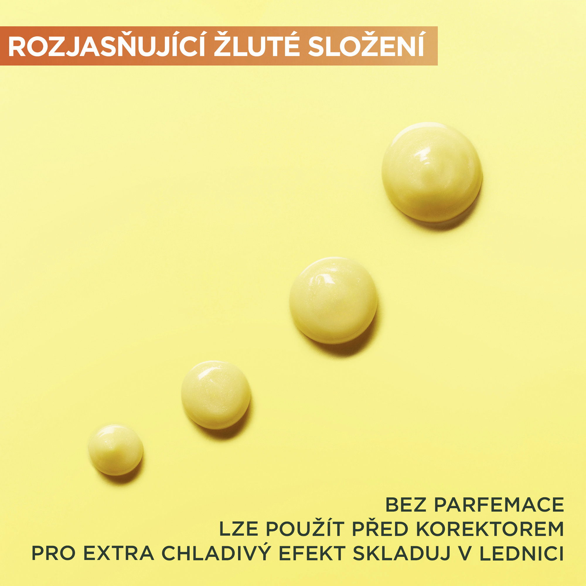Rozjasňující oční krém s vitaminem C*. Krém s obsahem 4% koncentrace směsi vitaminu C*, niacinamidu, kofeinu a extraktu z banánu redukuje známky únavy, tmavé kruhy pod očima a jemné vrásky.