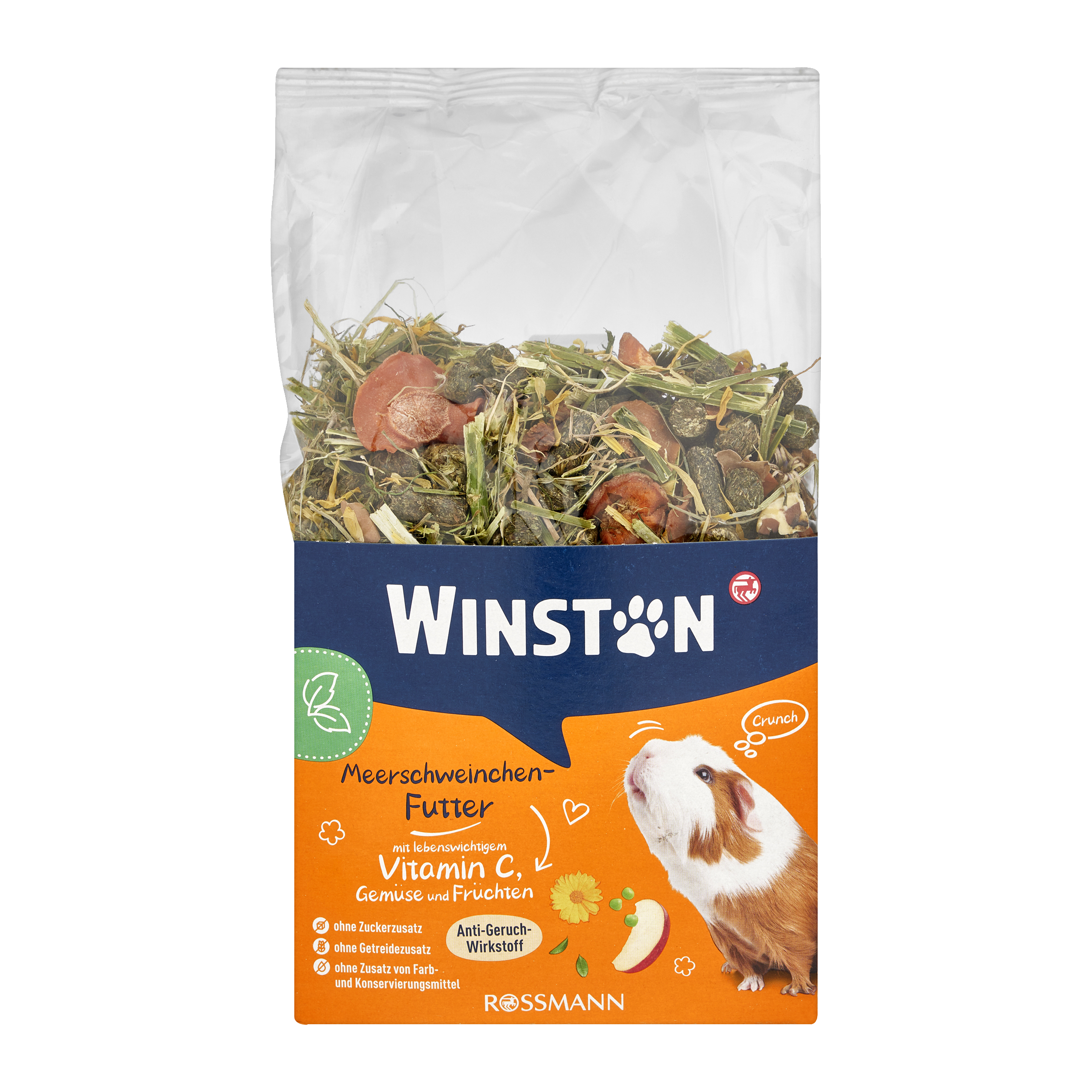 Krmivo pro morčata bez obilovin Winston představuje chutnou a výživově vyváženou směs, která respektuje přirozené potřeby malých hlodavců. Díky receptuře bez obilovin se skvěle hodí i pro morčata s citlivým zažíváním. Kombinace křupavé zeleniny, květin a lahodného ovoce přináší pestrý zážitek při každém krmení a zároveň podporuje přirozené chování morčat – intenzivní žvýkání, drcení a zpracování potravy. Jelikož si morčata nedokážou sama vytvořit důležitý vitamín C, krmná směs Winston je obohacená o tento i další vitamíny, čímž přispívá ke zdravému imunitnímu systému. Vysoký podíl vlákniny podporuje zdravé trávení a přirozenou péči o zuby. Extrakt z Yucca schidigera navíc účinně pomáhá přirozeně redukovat nepříjemné pachy tím, že na sebe váže pachové látky ve výměšcích.