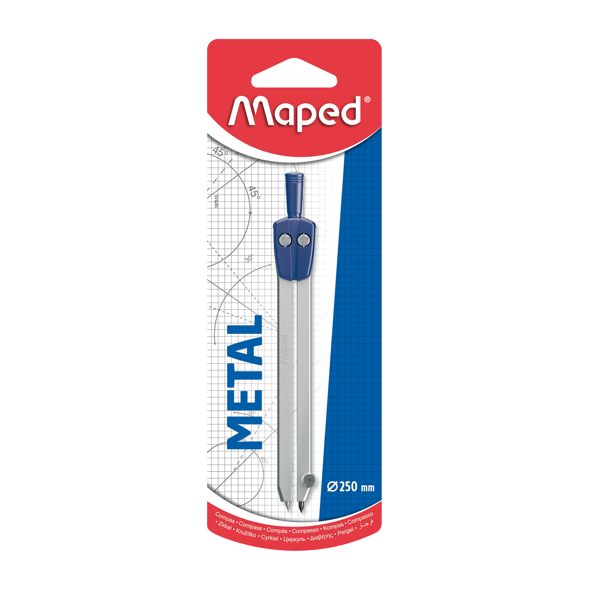 Ekonomické kovové kružítko Maped Start s 2mm tuhou a ergonomickým úchopem pro lepší držení.