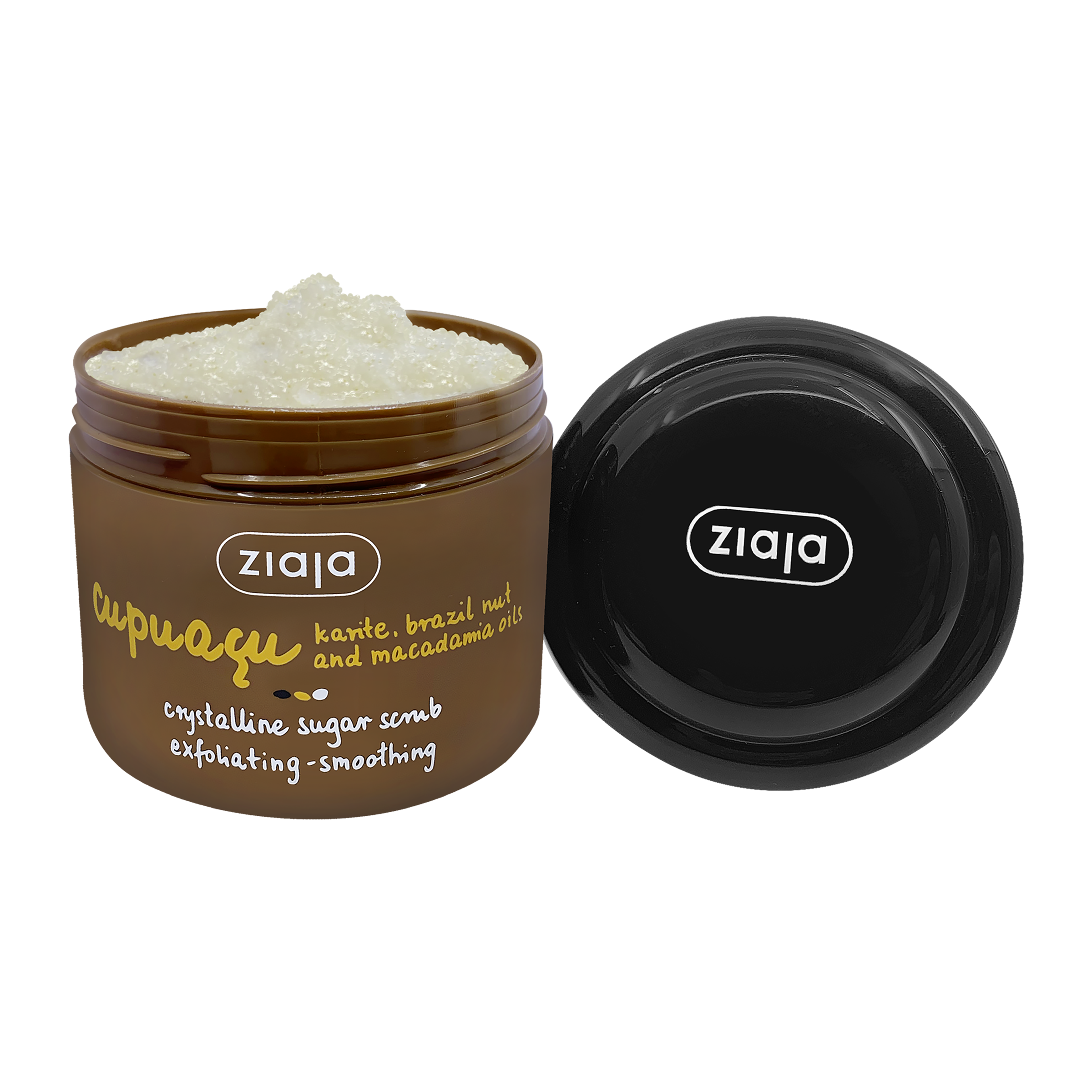 Krystalický cukrový peeling s máslem Cupuacu pro všechny typy pokožky. Máslo Cupuacu ze semen amazonského stromu Theobroma grandiflorum s chutnými plody a krásnými květy. Má vysoký obsah nasycených a nenasycených mastných kyselin. Vykazuje pozoruhodné výživné a regenerační vlastnosti. Intenzivně hydratuje pokožku, zjemňuje ji a obnovuje správnou elasticitu a obsahuje přírodní filtr proti UV záření. Rozpouští se při teplotě těla. Peeling jemně myje, exfoliuje, změkčuje a vyhlazuje pokožku. Obsahuje krystalický cukr a jemnou drť skořápek ořechů, které aktivují pokožku během masírování a vyhlazují svrchní vrstvu pokožky. Snižuje drsnost a suchost pokožky. Vytváří na pokožce ochranný saténový film a poskytuje příjemnou a podmanivou vůni. Máslo cupuacu a máslo karité tvoří na povrchu pokožky ochranný saténový film. Redukují drsnost, suchost a nadměrné loupání pokožky. Zaručují efekt měkké pokožky. Makadamiový olej a olej z brazilských para ořechů vyživují a chrání svrchní vrstvu pokožky. Jemně myjí a pečují o pokožku. Chrání pokožku před vysoušením během mytí. Cukr a přírodní skořápky ořechů aktivují pokožku během masírování, jemně odstraňují a vyhlazují svrchní vrstvu pokožky.