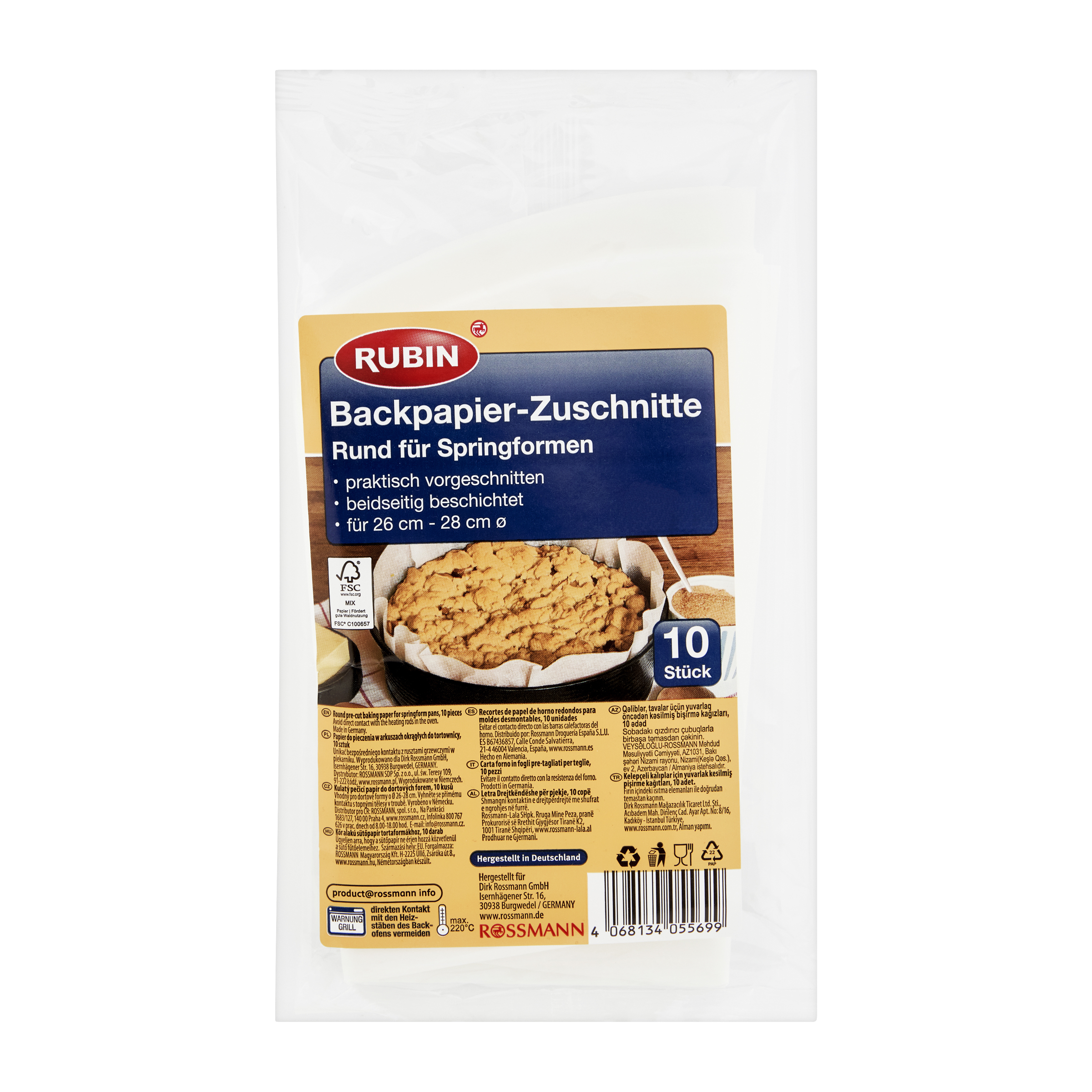 Předřezaný kulatý pečicí papír je ideální pro dortové formy. Jeho oboustranný nepřilnavý povrch usnadňuje jak pečení, tak čištění.