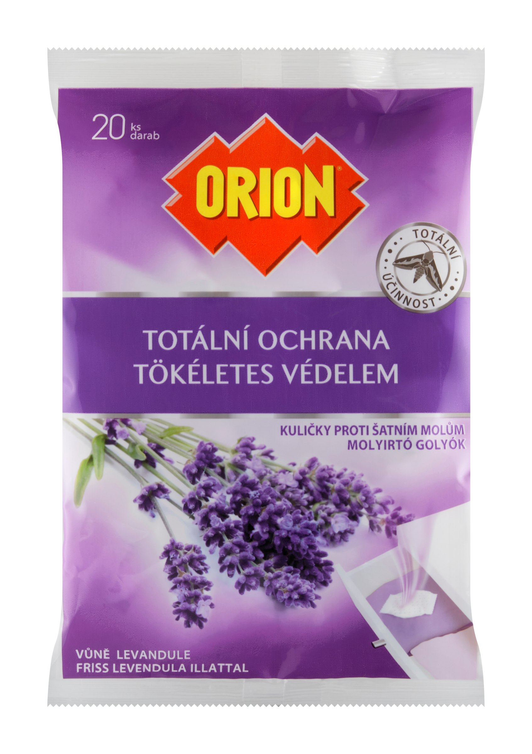 Orion totální ochrana kuličky proti šatním molům - vůně levandule jsou insekticidní přípravky, které zabíjí šatní moly, aniž by došlo k ušpinění oděvu nebo rukou.