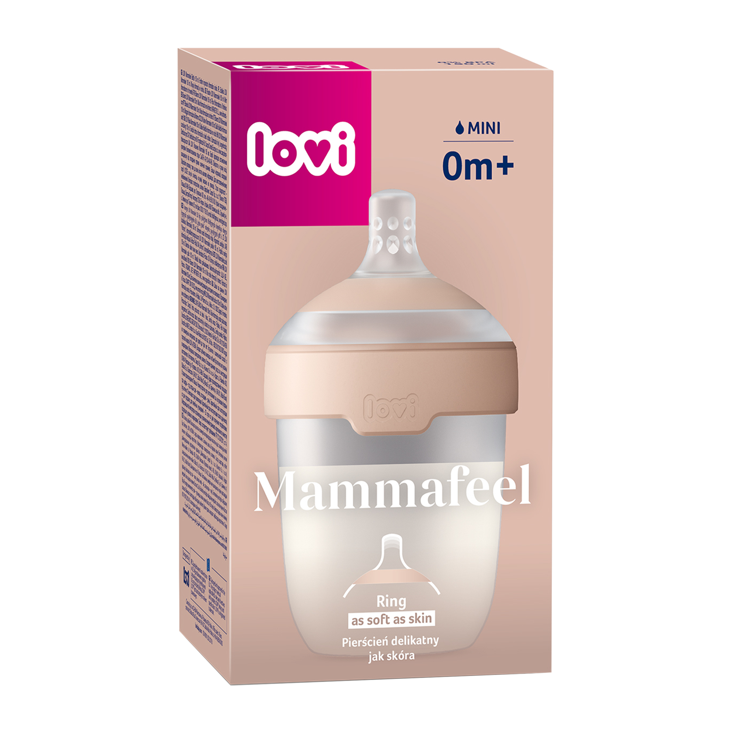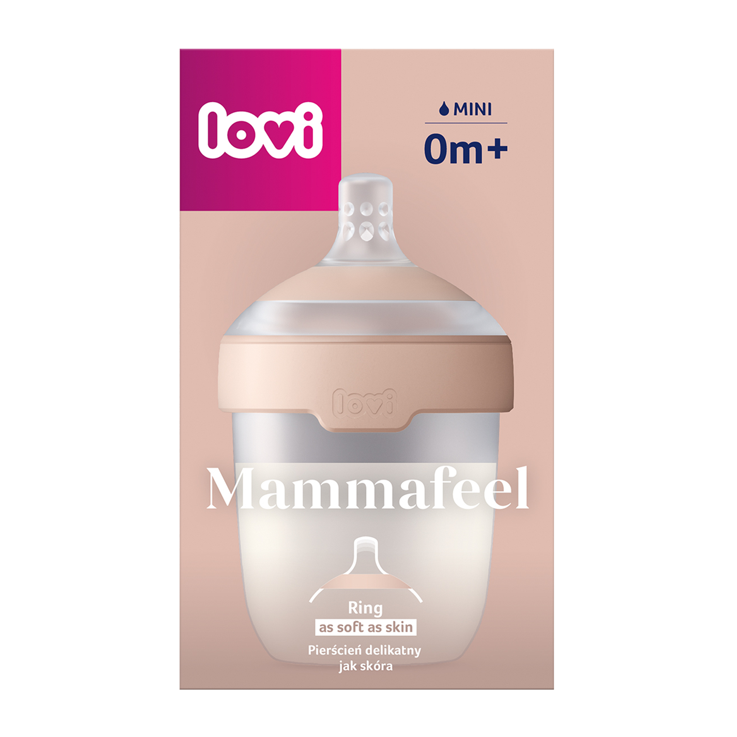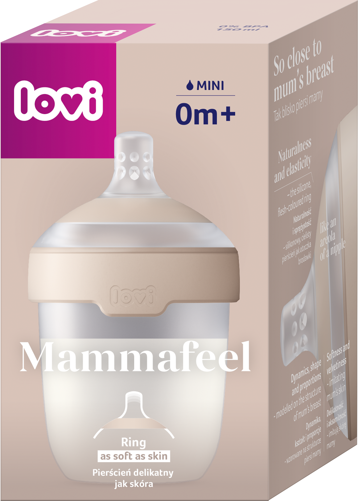 Inovativní lahev Mammafeel co nejvíce připomíná maminčina ňadra, pokud jde o barvu, tvar, teplo a dynamiku.​ Dynamická savička umožňuje sání v přirozeném rytmu a nenarušuje sací reflex.