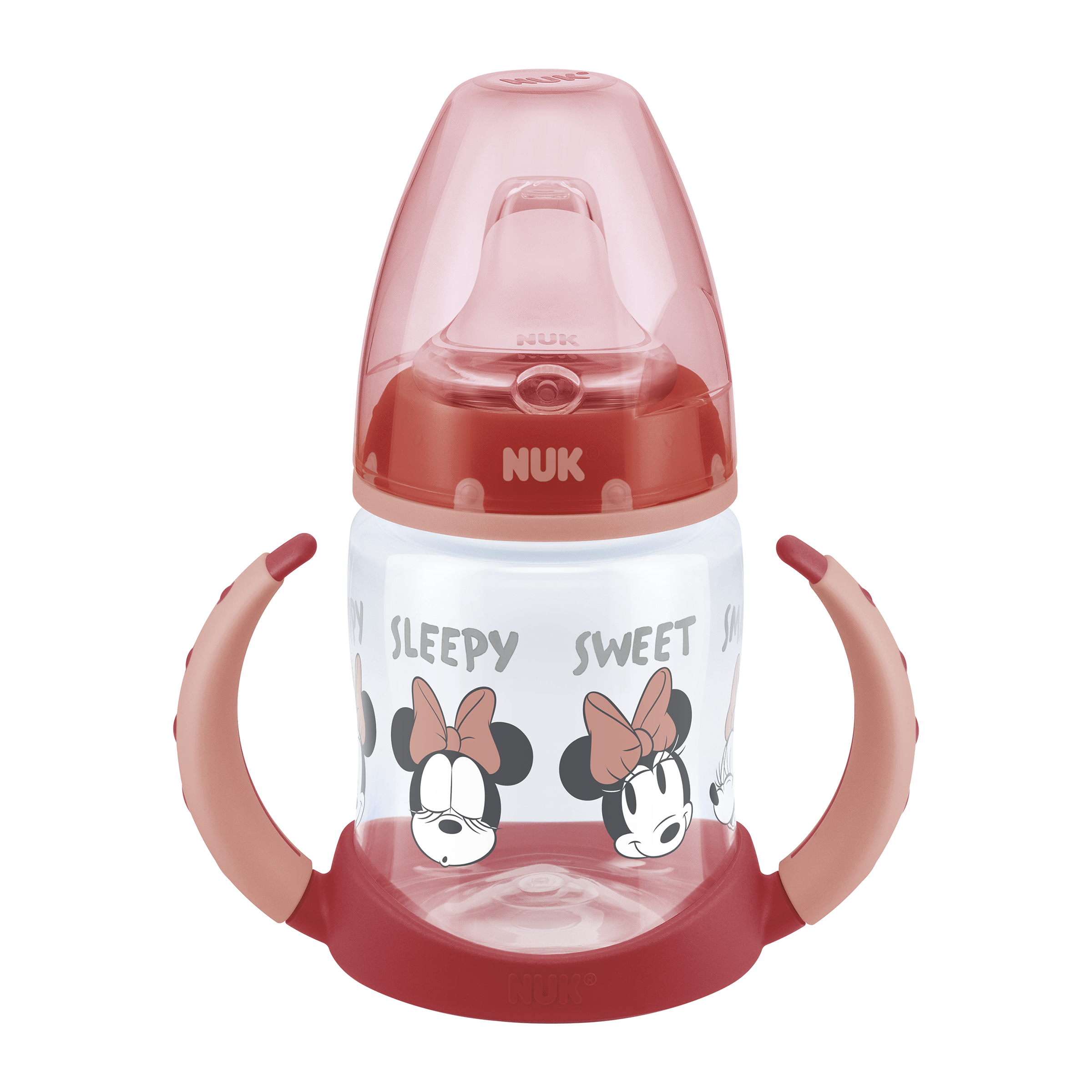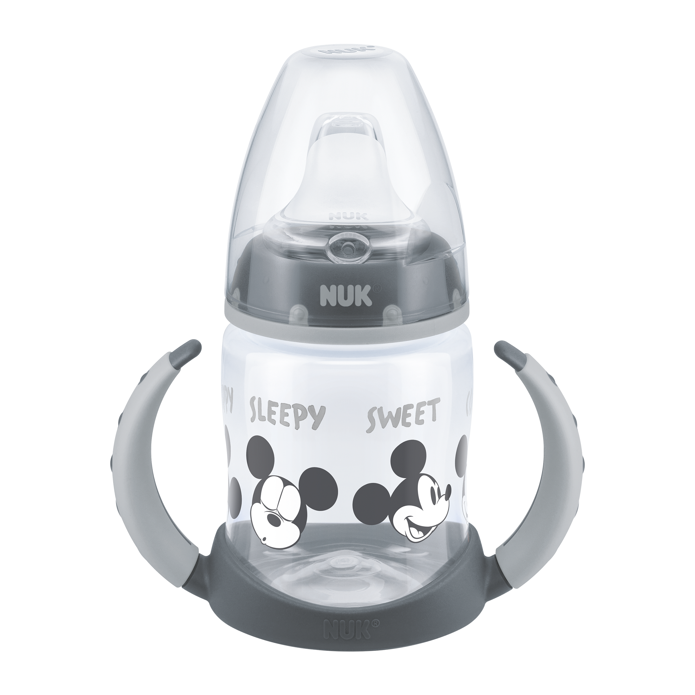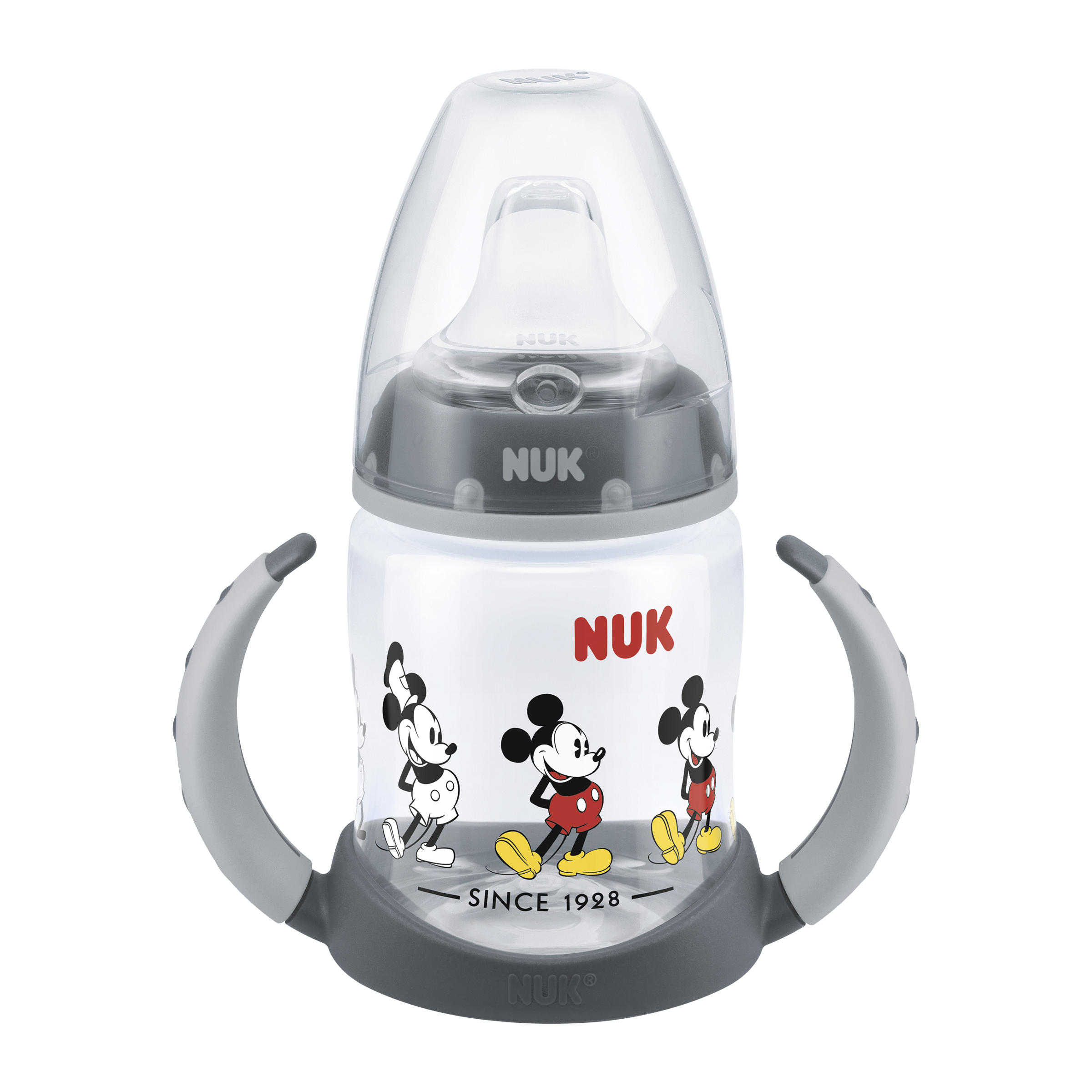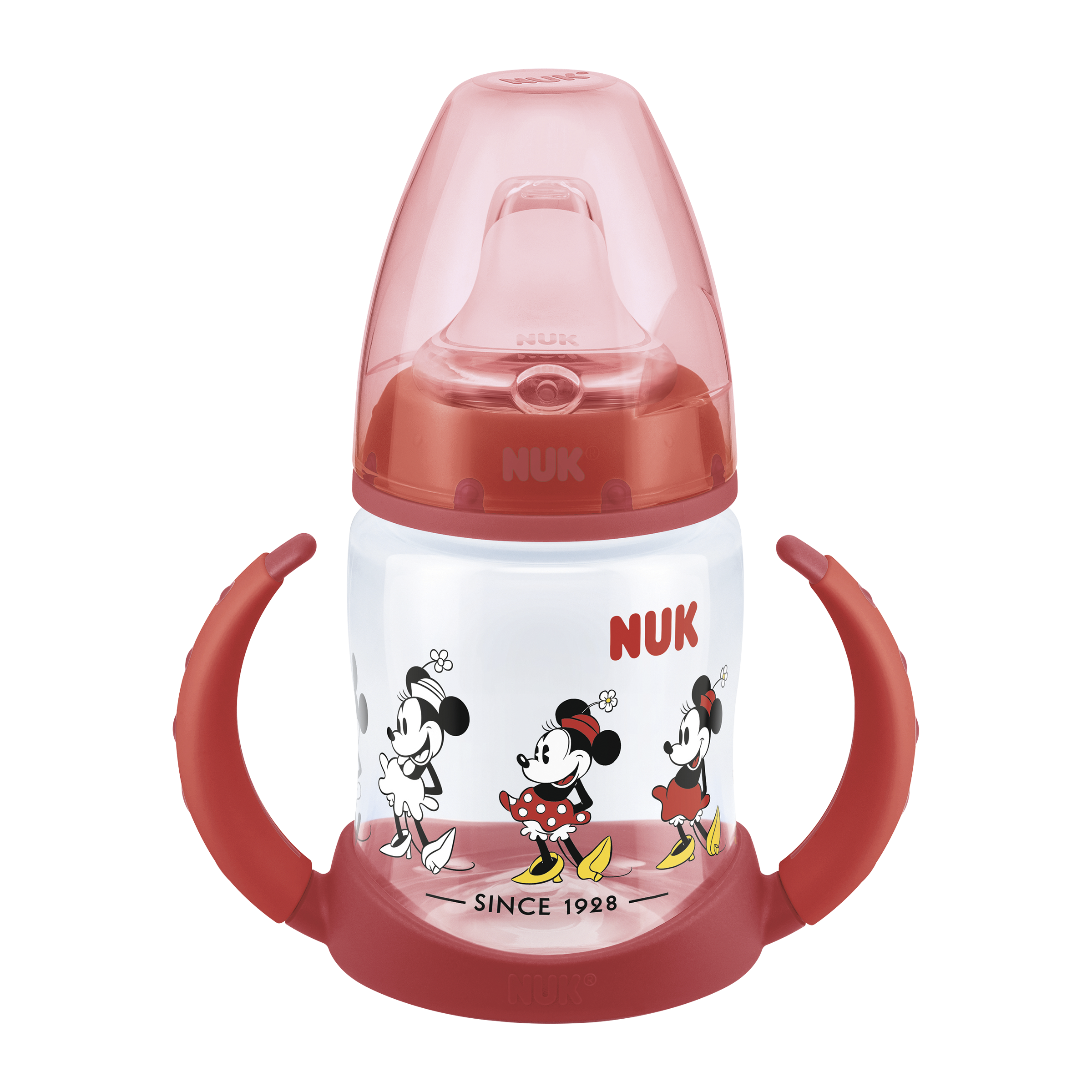 Řada NUK s oblíbenými Disney postavičkami Mickey Mouse a Minnie Naše dětské lahvičky na učení s Mickey Mousem a Minnie pomáhají dětem naučit se samostatně pít. Klasické moderní vzory zdobí dětské lahvičky na učení NUK a potěší malé i velké fanoušky Disneyho pohádek. Ponořte se do jedinečného světa Mickeyho a Minnie! Dětská lahvička na učení NUK First Choice s kontrolou teploty To je dobrý pocit! Když nastane shon a zmatek, je dobré vědět, že nejste na všechno sama. Když se z miminka stane batole, dětská lahvička NUK First Choice s kontrolou teploty pomůže bezproblémovému přechodu k samostatnému pití. Dětská lahvička na učení NUK First Choice s kontrolou teploty ukáže, kdy má obsah láhve tu správnou teplotu – máte tak jistotu, že nápoj vašeho dítěte není příliš horký. Pokud je nápoj příliš horký, modrá barva indikátoru se změní na bílou. Tekutina by měla mít ideálně tělesnou teplotu (37 °C = středně modrý odstín). Pozor: NUK kontrola teploty je určena pro dodatečnou kontrolu. Proto před podáním nápoje dítěti teplotu znovu zkontrolujte. S vysoce kvalitním silikonovým pítkem Dětská lahvička na učení NUK First Choice má měkké silikonové pítko, které je příjemně měkké a nekapající. Integrovaný antikolikový systém NUK vyrovnává tlak v lahvičce a tím, že dítě spolyká méně vzduchu, pomáhá snižovat riziko koliky. Průhledný silikon se snadno čistí a je obzvláště odolný vůči teplu. Neobsahuje škodlivé látky, je možné ho vyvařit, je bez zápachu, průhledný a má hladký povrch – všechny vlastnosti, které jsou pro pítko důležité. Jednoduché čištění a ideální pro přípravu výživy.