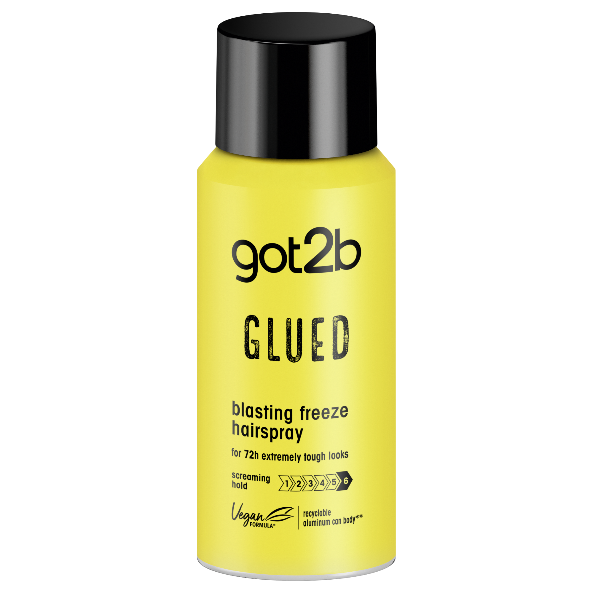 Got2b Glued Blasting Freeze lak na vlasy - pro extrémně odolný look po dobu 72h Používá se jako sprej, drží jako lepidlo! Glued lak na vlasy zmrazí odvážné účesy až do dalšího umytí. Získejte až 72 hodin ultra silné fixace bez slepení a vysoušení. Složení je veganské*. Hliníkové tělo plechovky je recyklovatelné.**
