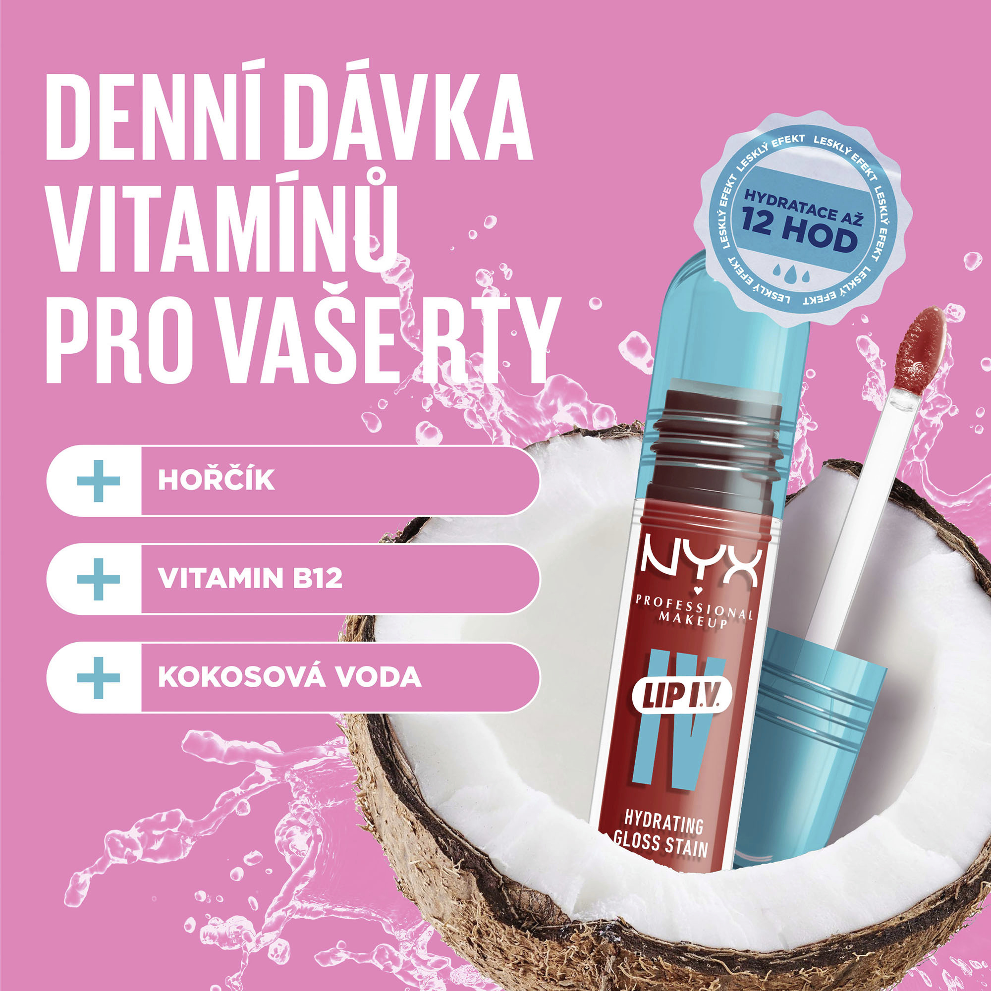 Dopřejte svým rtům intenzivní hydrataci a dlouhotrvající barvu s leskem na rty NYX Professional Makeup Lip IV. Okamžitě jim dodá trendy mokrý vzhled a postupně je zabarví. Již po jednom tahu se vaše rty budou pyšnit zářivou barvou, obohacenou o vitamíny, s dlouhotrvajícím efektem. Složení, obohacené o hořčík, vitamín B12 a kokosovou vodu, dokonale hydratuje a zanechá vaše rty svěží a hebké. Lesk na rty Lip IV je vyvinut s technologií water-breaking, která zaručuje lehké, ale intenzivní pigmenty a jedinečný, smyslný a osvěžující pocit na rtech. Používejte pro okamžitý wet look efekt, který zanechá na rtech přirozeně vypadající, rovnoměrné zabarvení. Objevte svůj perfektní odstín a dodejte rtům neodolatelný lesk, který podtrhne vaši jedinečnost.