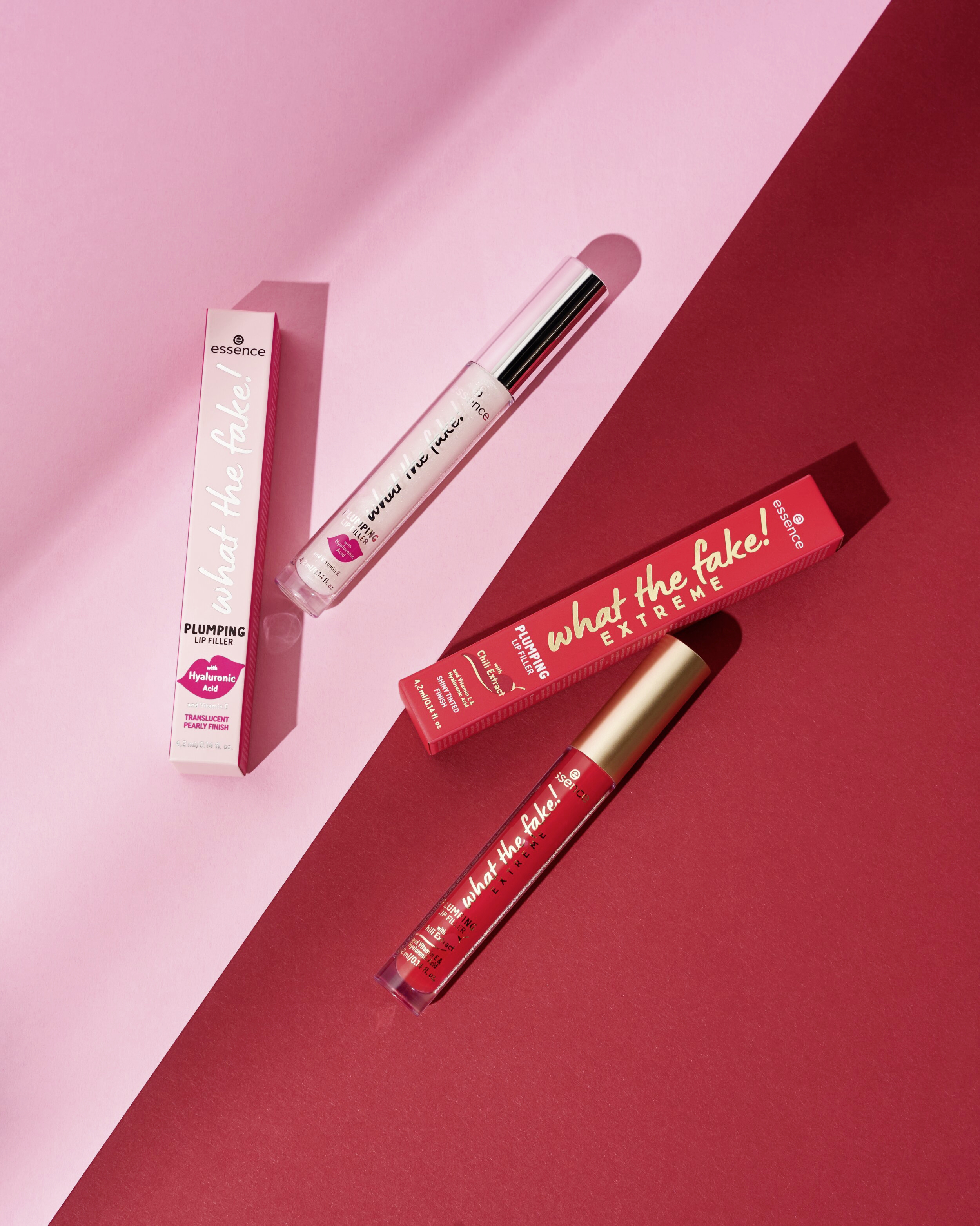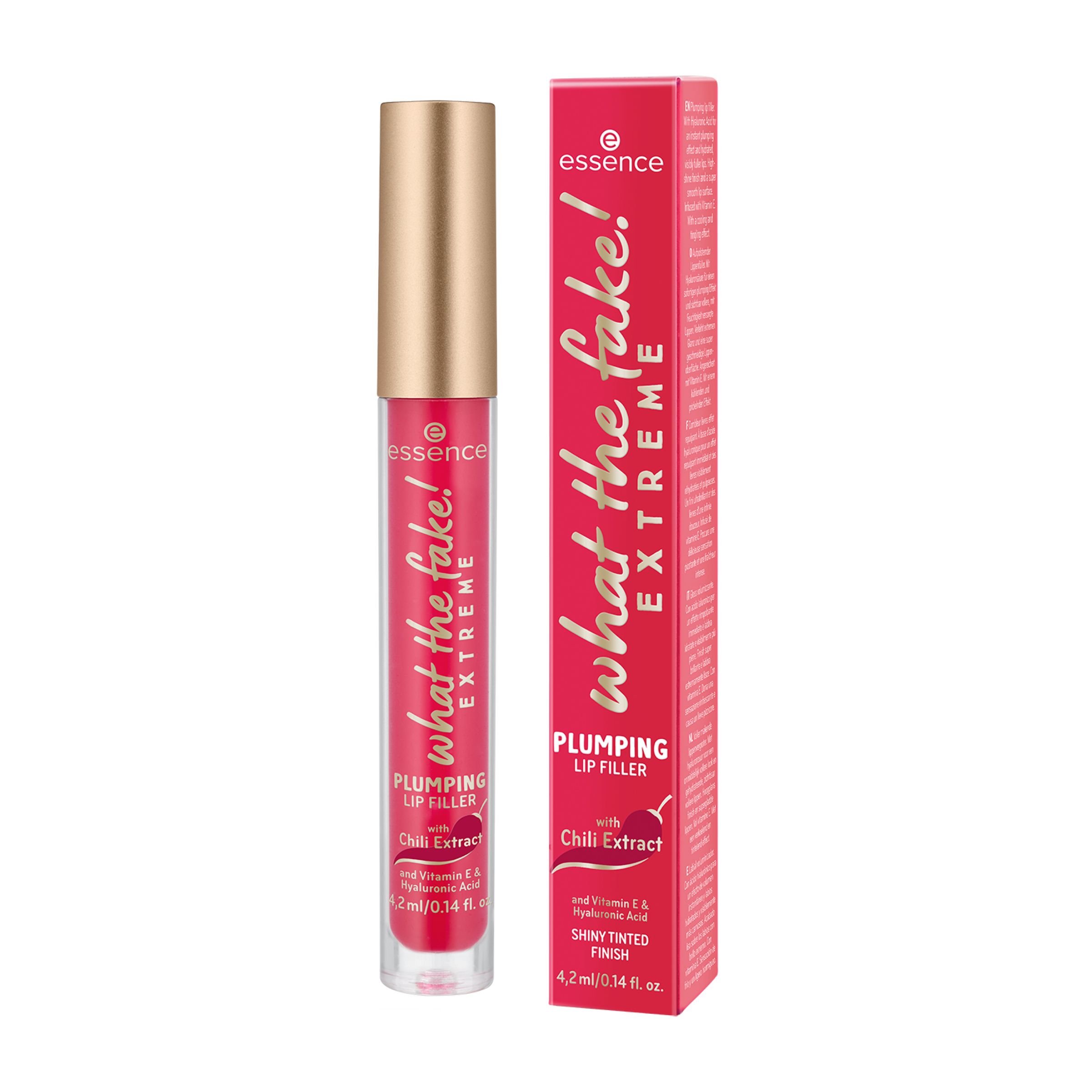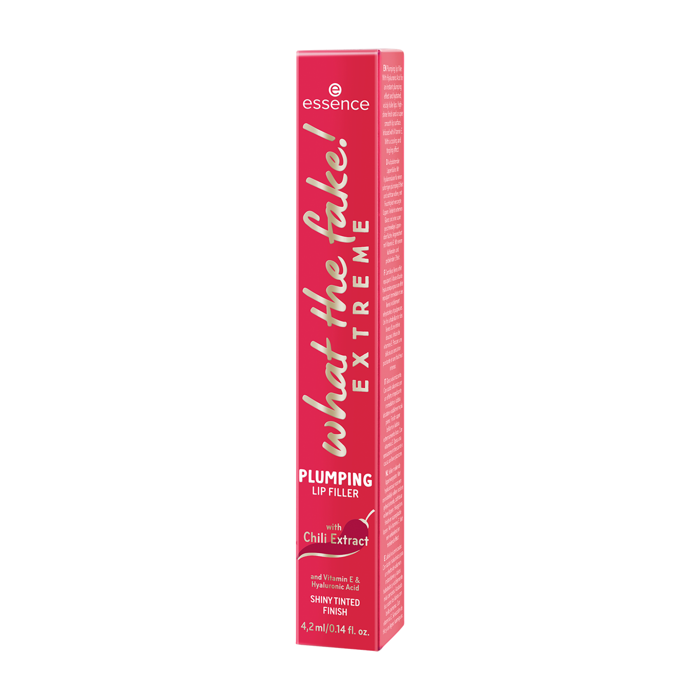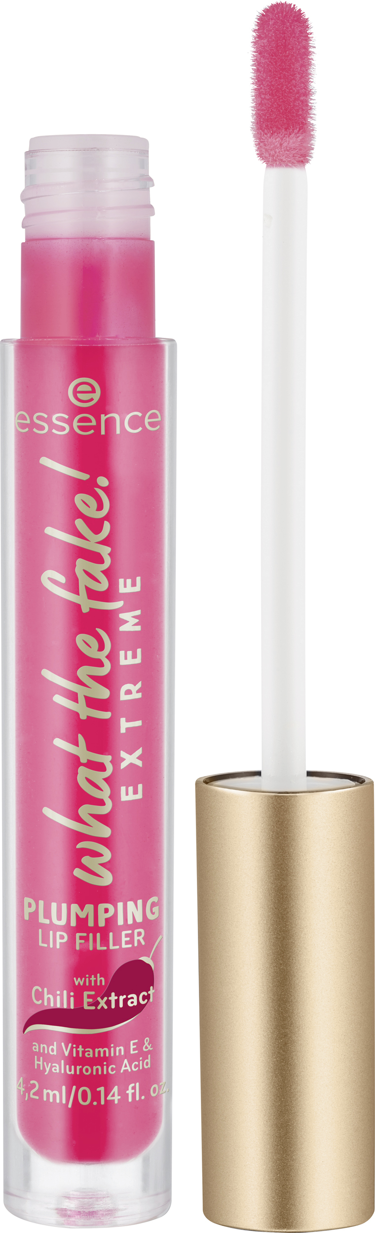 Není určeno pro slabé povahy! The what the fake! LESK NA RTY EXTREME PLUMPING LIP FILLER je dokonalou tajnou zbraní pro opticky plnější rty! Jeho efekt je ještě intenzivnější než lesk na rty WHAT THE FAKE! PLUMPING LIP FILLER, který je již dostupný ve standardním sortimentu. Díky 0,3 % extraktu z chilli (capsaicin) vytváří tato extrémní verze extra pocit brnění na rtech. Kyselina hyaluronová a vitamín E vyživují rty pro jejich super hladký pocit. Složení neobsahuje alkohol, silikony ani olej a reaguje na přirozenou hodnotu pH rtů – tím se zvýrazní přirozená barva rtů. Ve spotřebitelském testu 94 % dobrovolníků potvrdilo „kypřící efekt“ a více než 92 % potvrdilo plnější vzhled rtů.*