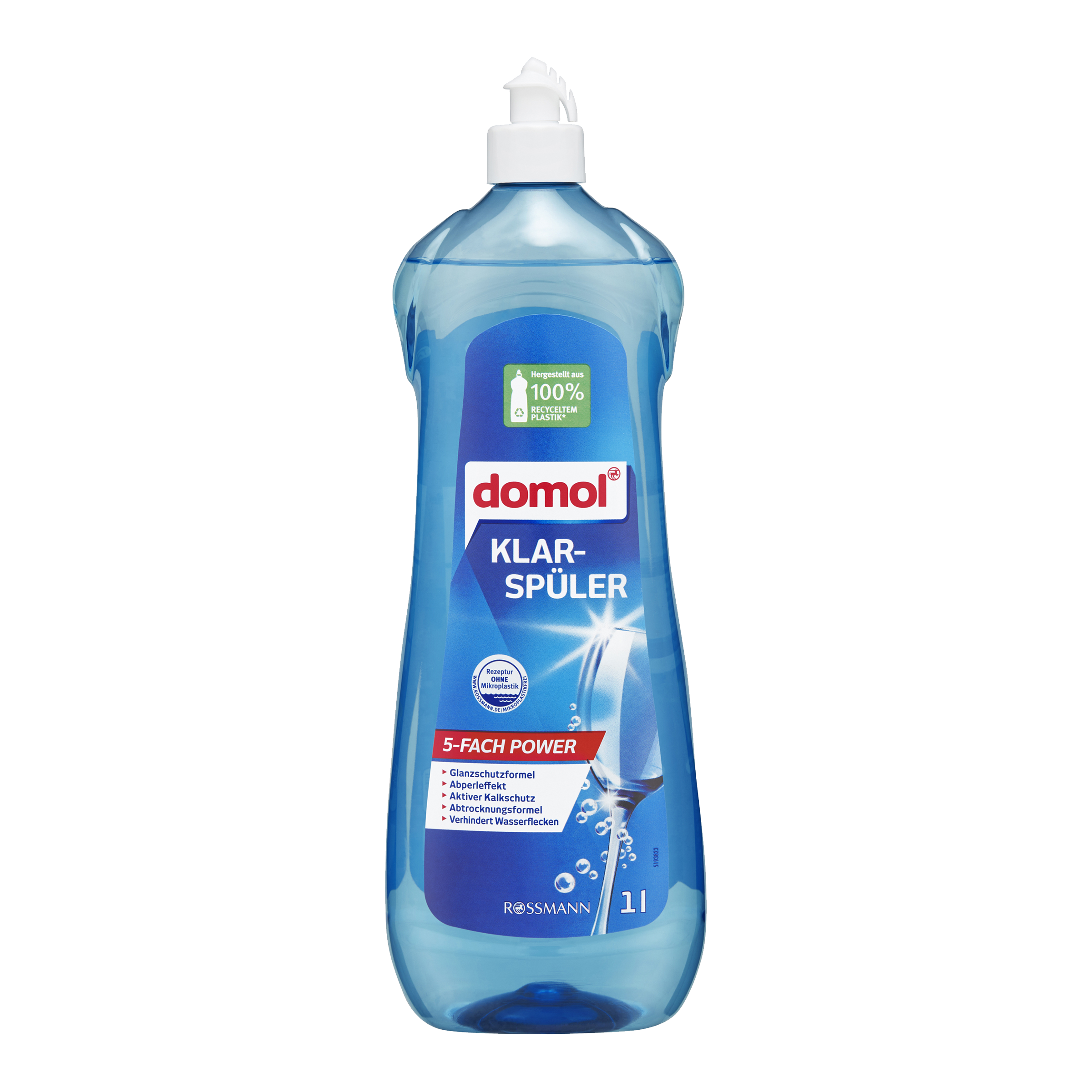 Leštící prostředek domol zajišťuje zářivý lesk na sklenicích a nádobí a je účinný proti vodním skvrnám a usazeninám vodního kamene.
