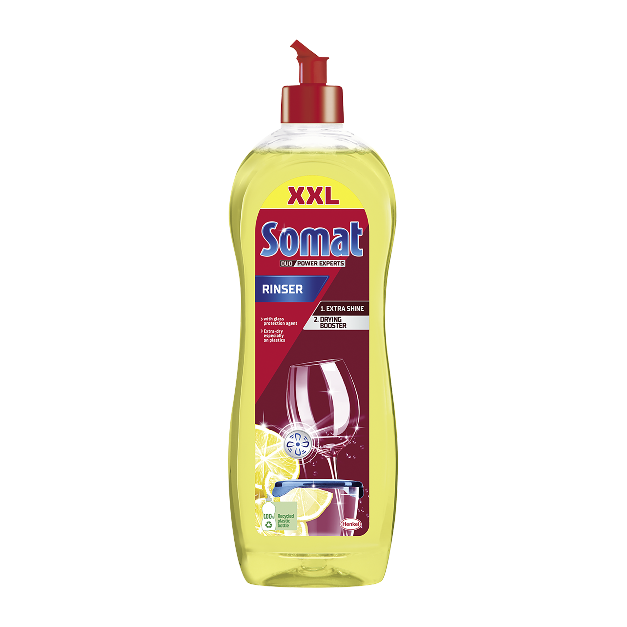 Už vás nebaví kalné skleničky nebo kapky vody na vašem nádobí? Díky Somat Leštidlu Lemon & Lime budou vaše skleničky a nádobí zářivě čisté po každém mycím cyklu. Poskytuje nejen účinek proti kapkám vody a ochranu před vodním kamenem, ale také udržuje vaši myčku zářivou se svěží vůní. Přidejte Somat Leštidlo Lemon & Lime do příslušné přihrádky dle pokynů od výrobce vaší myčky a zažijte zářivé výsledky a svěží vůni citrónu a limetky!