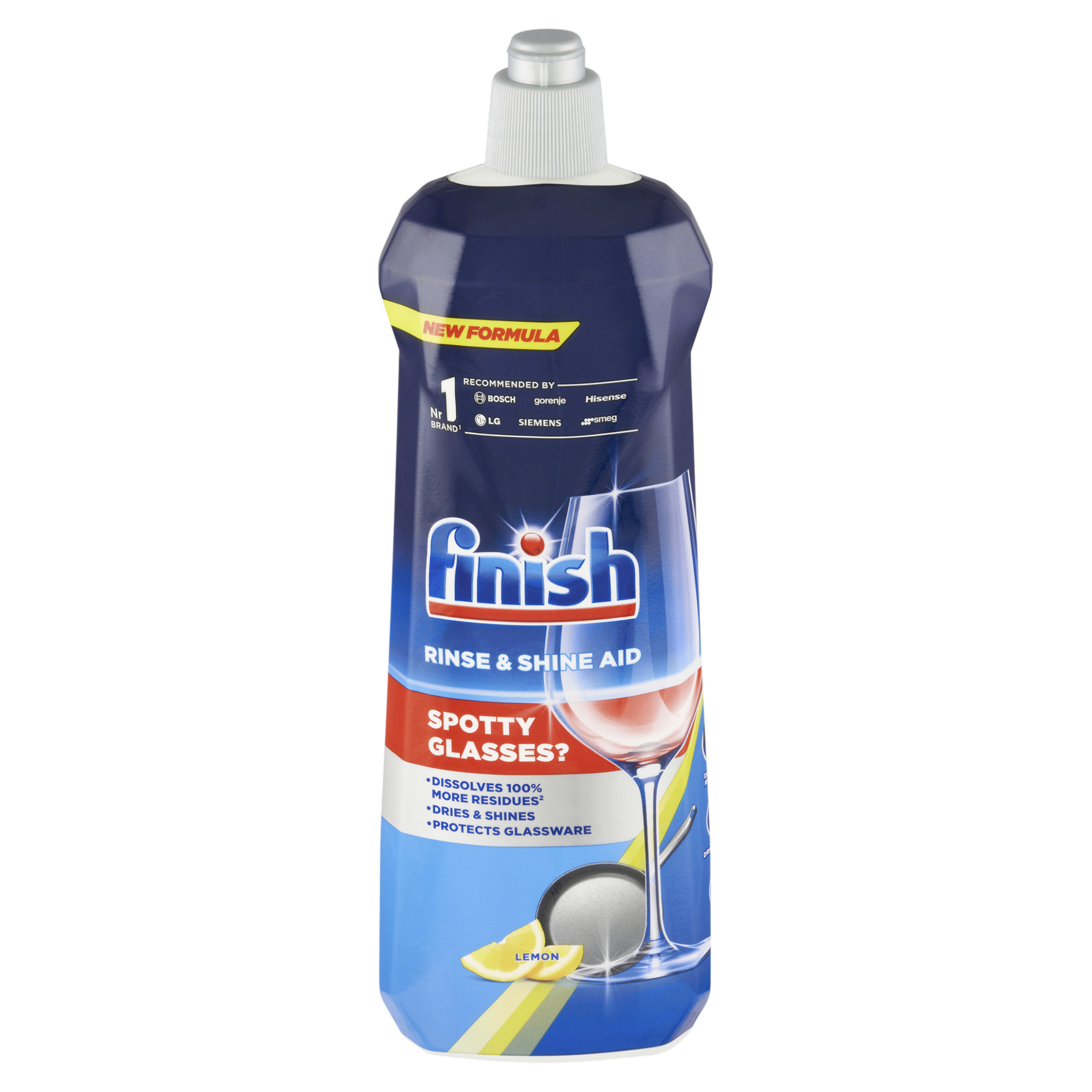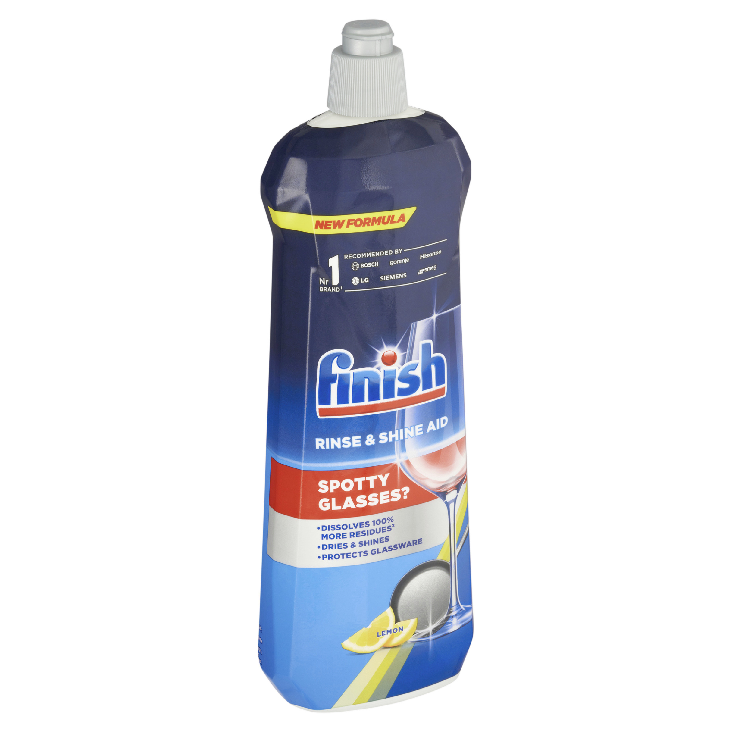 2x lepší schnutí vs. použití samotného detergentu Finish. Speciálně vytvořená směs povrchově aktivních látek pro lesk. Finish je nejvíce prodávanou značkou v kategorii automatického mytí nádobí na základě obratu dosaženého v EU (kromě Kypru, Finska, Lucemburska a Malty) v předchozím roce. Zdroj: Nielsen.