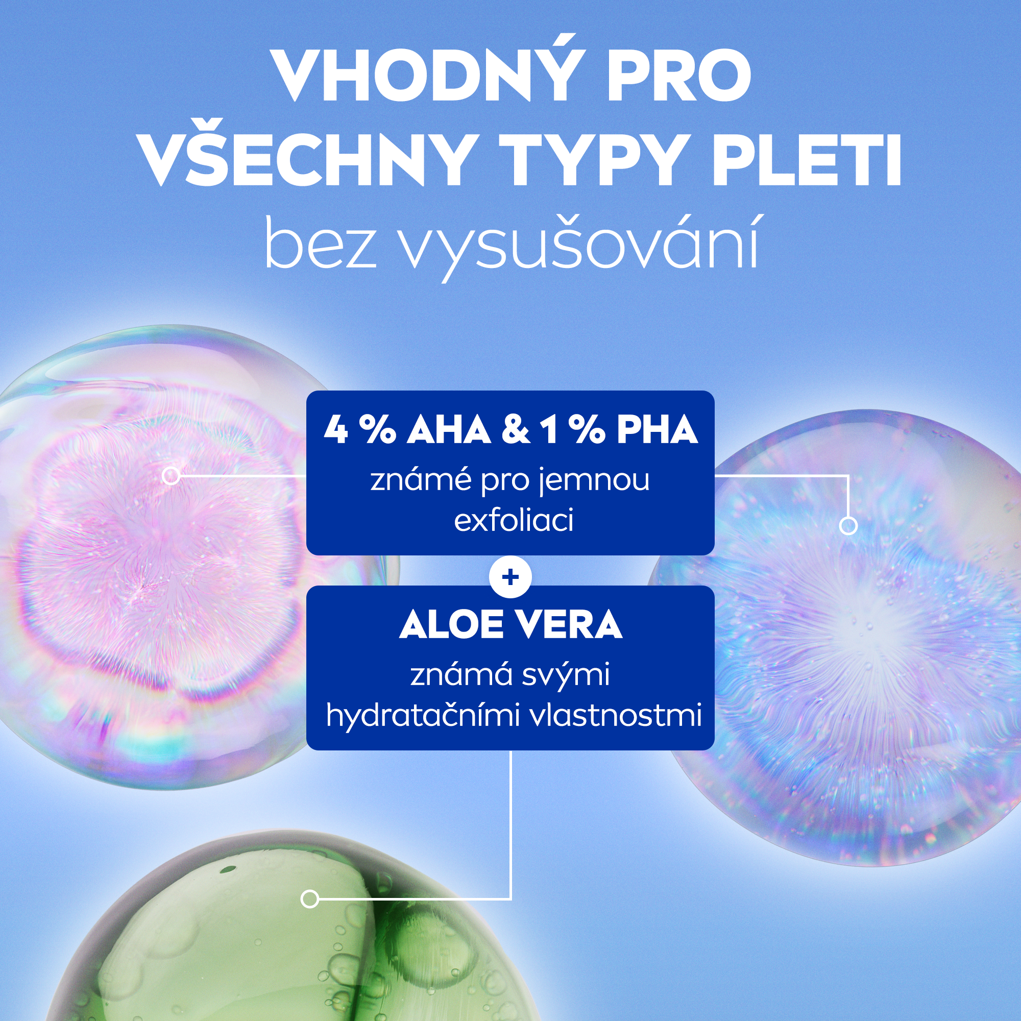 - 4 % AHA a 1 % PHA jemně exfoliují a obnovují povrch pleti