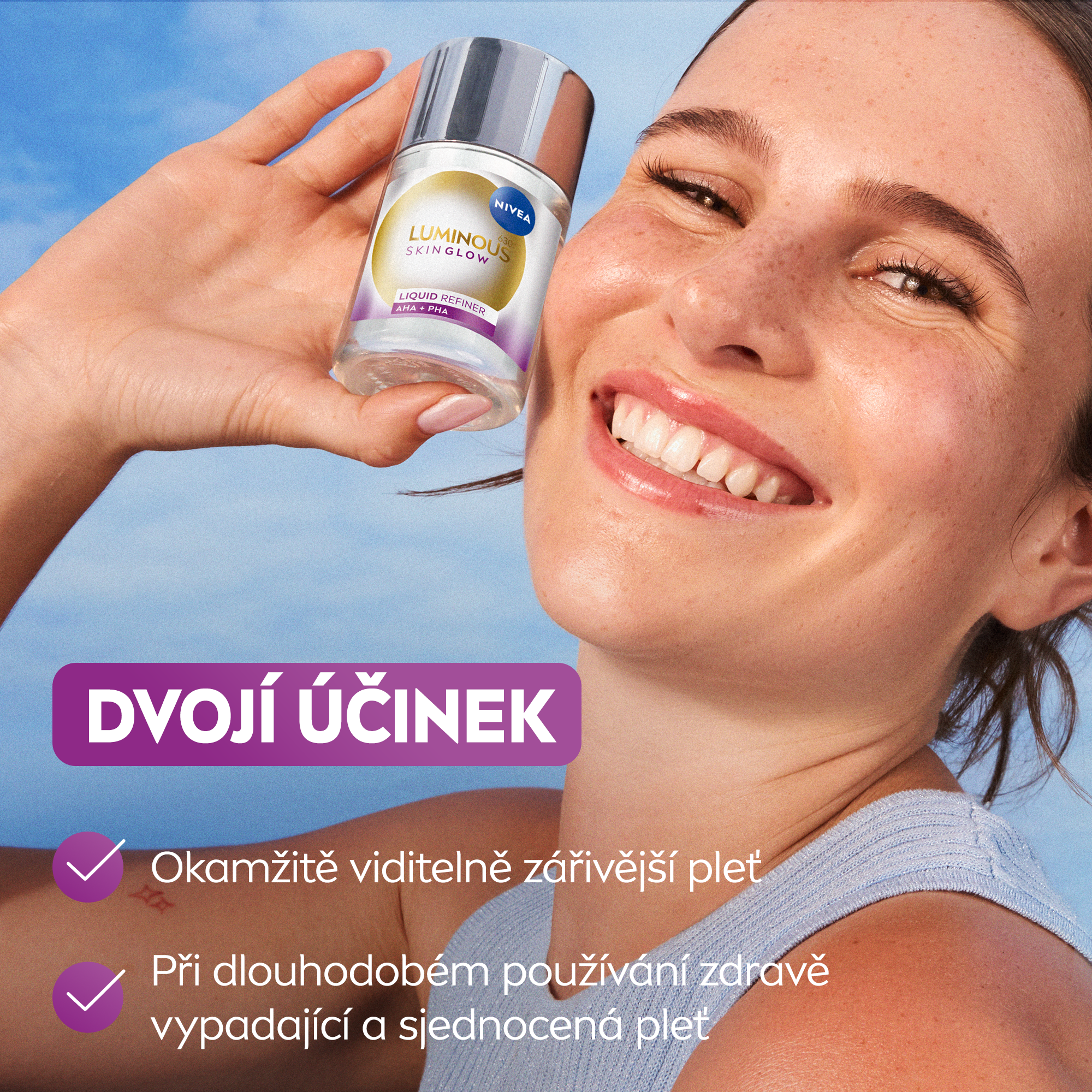 - Viditelně sjednocená, hladká a zářivější pleť
