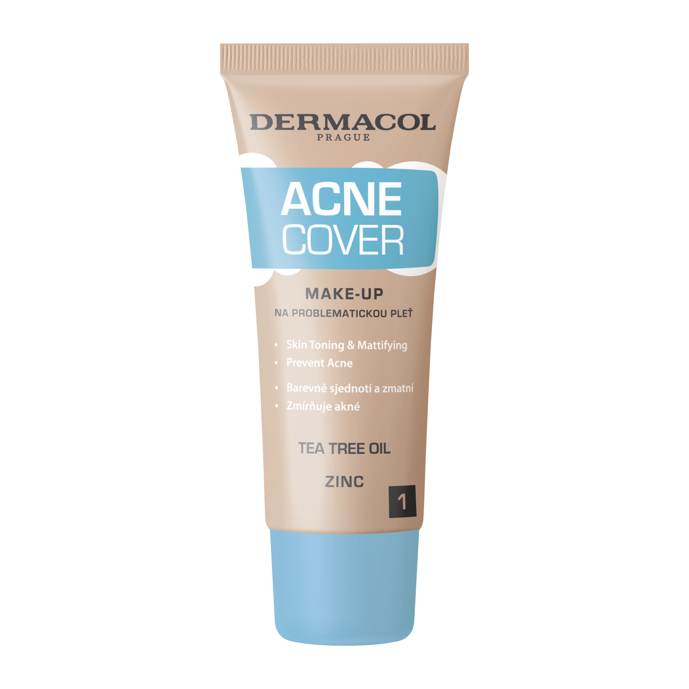 AcneCover Make-up na problematickou pleť vyvinutý speciálně pro potřeby problematické pleti. Pečující make-up na problematickou pleť o ni účinně a šetrně pečuje po celý den, zmatňuje ji, neucpává póry a potlačuje tvorbu akné. Olej z australského čajovníku s antibakteriálními a antiseptickými vlastnostmi podporuje regeneraci pleti. Zincidone® snižuje nadměrnou tvorbu kožního mazu a zabraňuje množení mikroorganismů. Kombinace extraktu z kořene kosatce, zinku, vitaminu A a tea tree oleje čistí pleťové póry, redukuje lesk pokožky. Make-up na aknózní pleť chrání před rozvojem aknózního zánětu díky antibakteriální složce. Výsledky klinických studií po 28 dnech používání: přes 80 % testujících potvrdilo čistší a méně mastnou pleť.