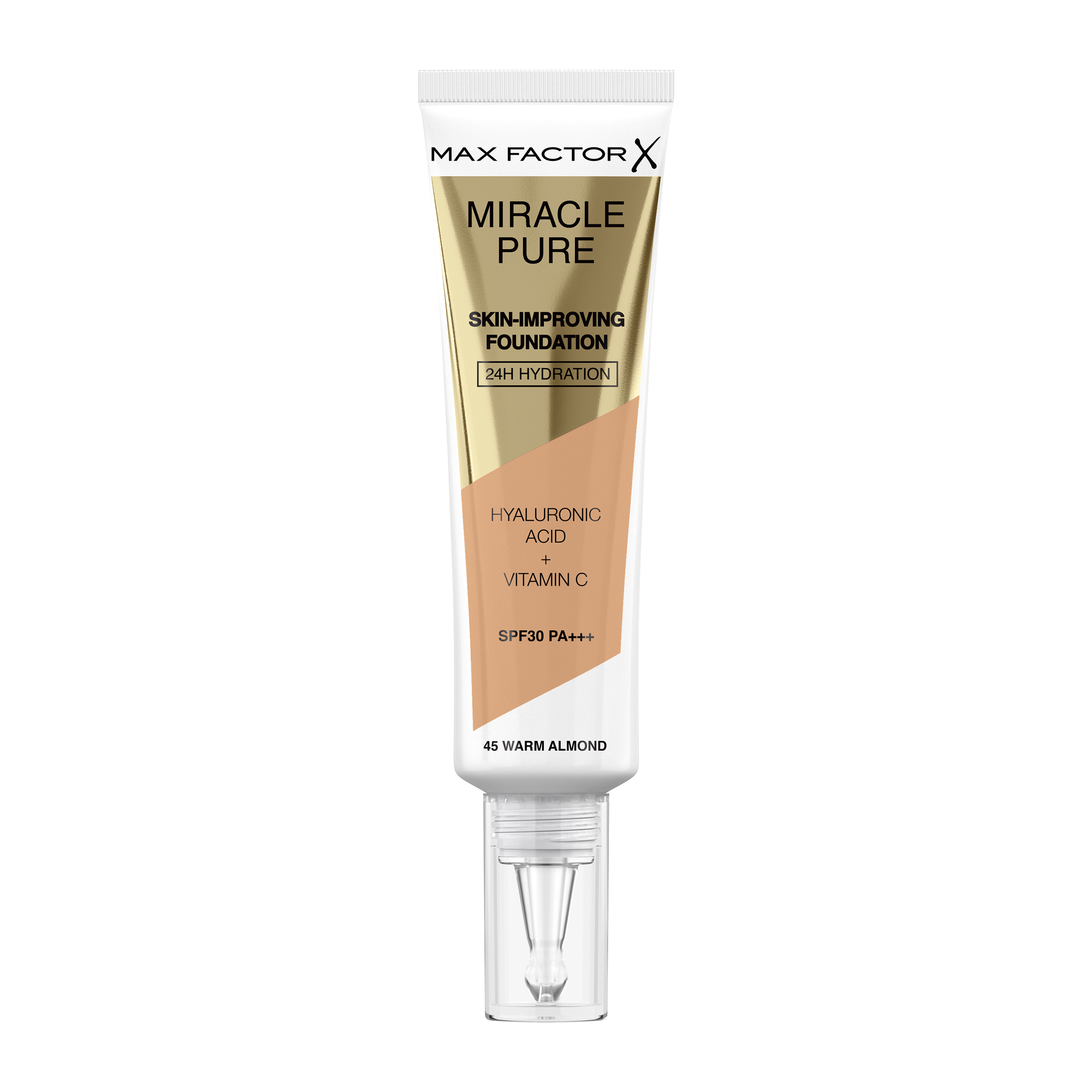 Nový Max Factor Miracle Pure make-up pro zdokonalení kvality vaší pleti. První make-up a péče o pleť v jednom se složením s 89% pečujících a vyživujících látek včetně kolagenového komplexu a kyseliny hyaluronové, vitamínu C a přírodní alternativy k retinolu; alfalfa extraktu. Pouze díky jedné kapce se vaše pleť prokazatelně projasní a zdokonalí.