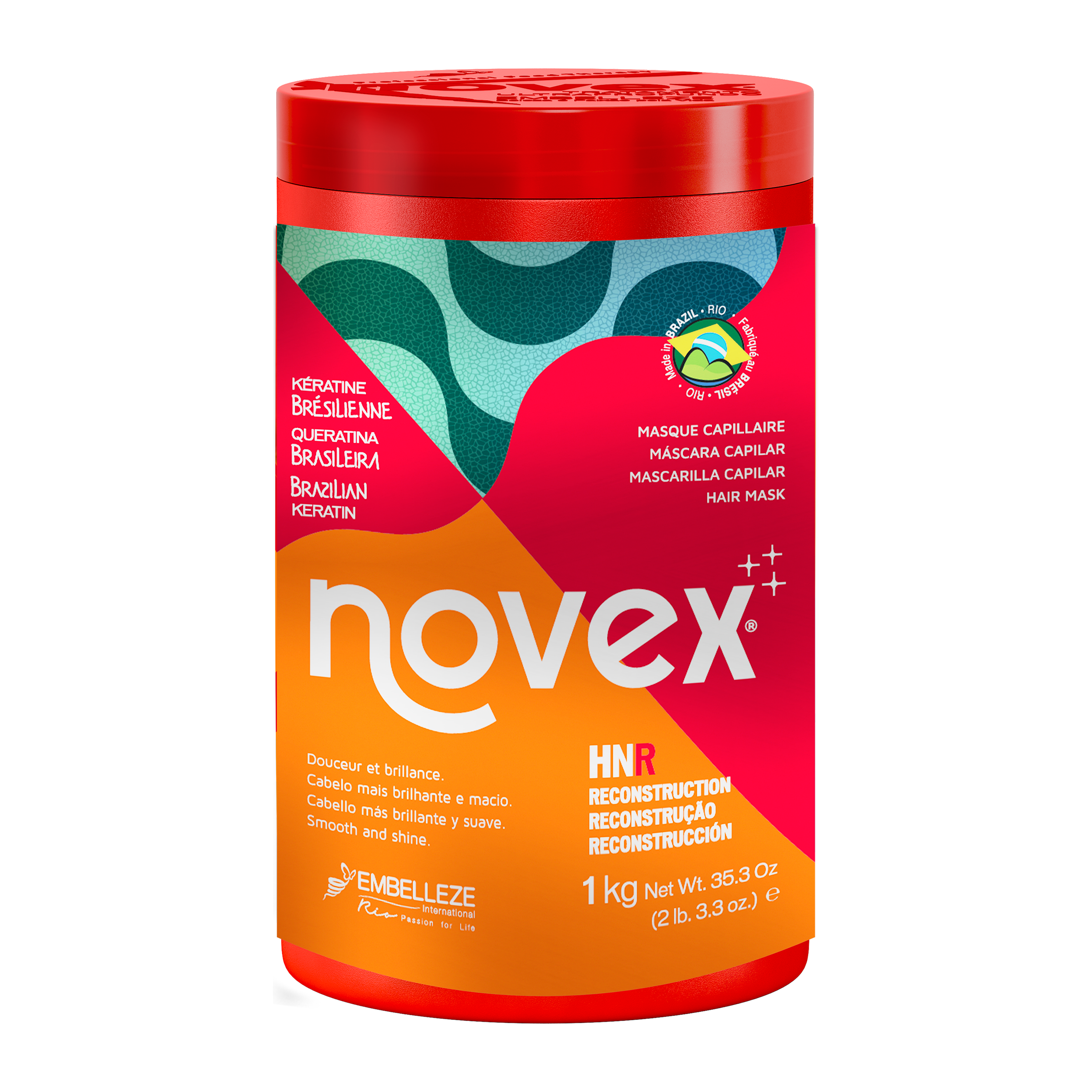 Maska na vlasy Novex Brazilian Keratin obsahuje 100% brazilský keratin a vitamin E, poskytuje ultrahloubkovou hydrataci a je ideální pro extrémně poškozené a lámavé vlasy. Novex Brazilian Keratin je skvělý pro obnovu vlasů poškozených znečištěním, chemickými procesy a častým používáním žehličky. Díky hydrolyzovanému keratinu se rychle vstřebává a zajišťuje zdravé, silné a krásné vlasy.