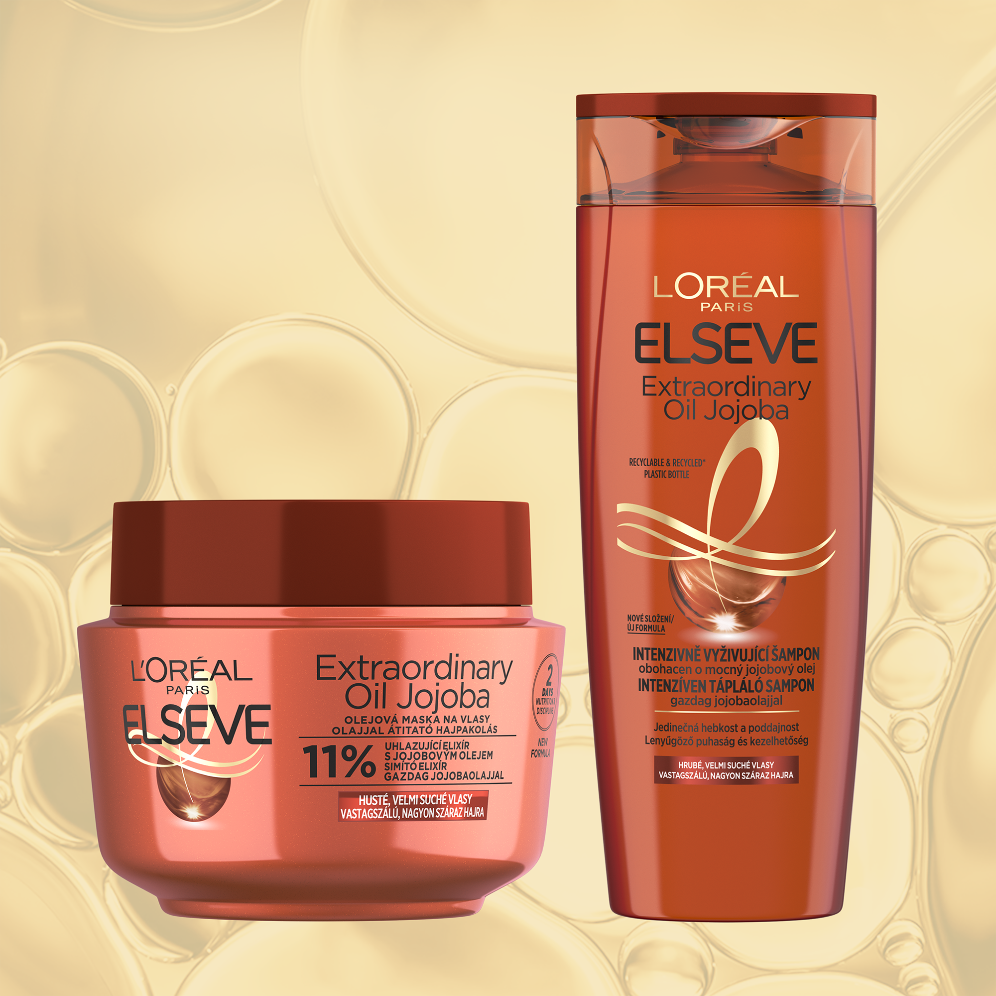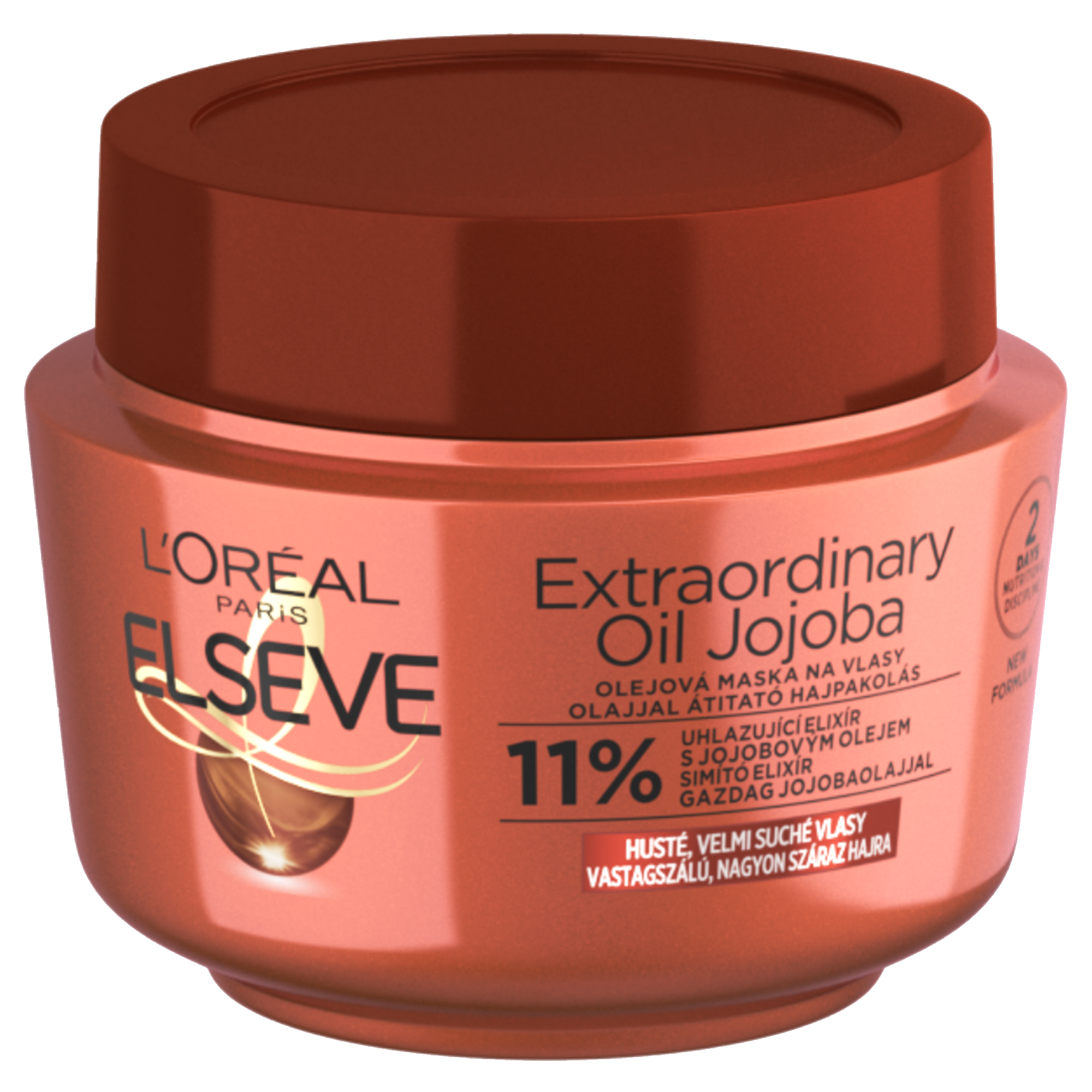 Maska s jojobovým olejem na velmi suché vlasy. Jak vyživit suché vlasy bez lesku? Elseve Extraordinary maska obohacená o jojobový olej se 3 možnostmi použití, vyživuje velmi suché vlasy právě tak, jak to potřebují pro dosažení neobyčejné jemnosti, poddajnosti a lesku.