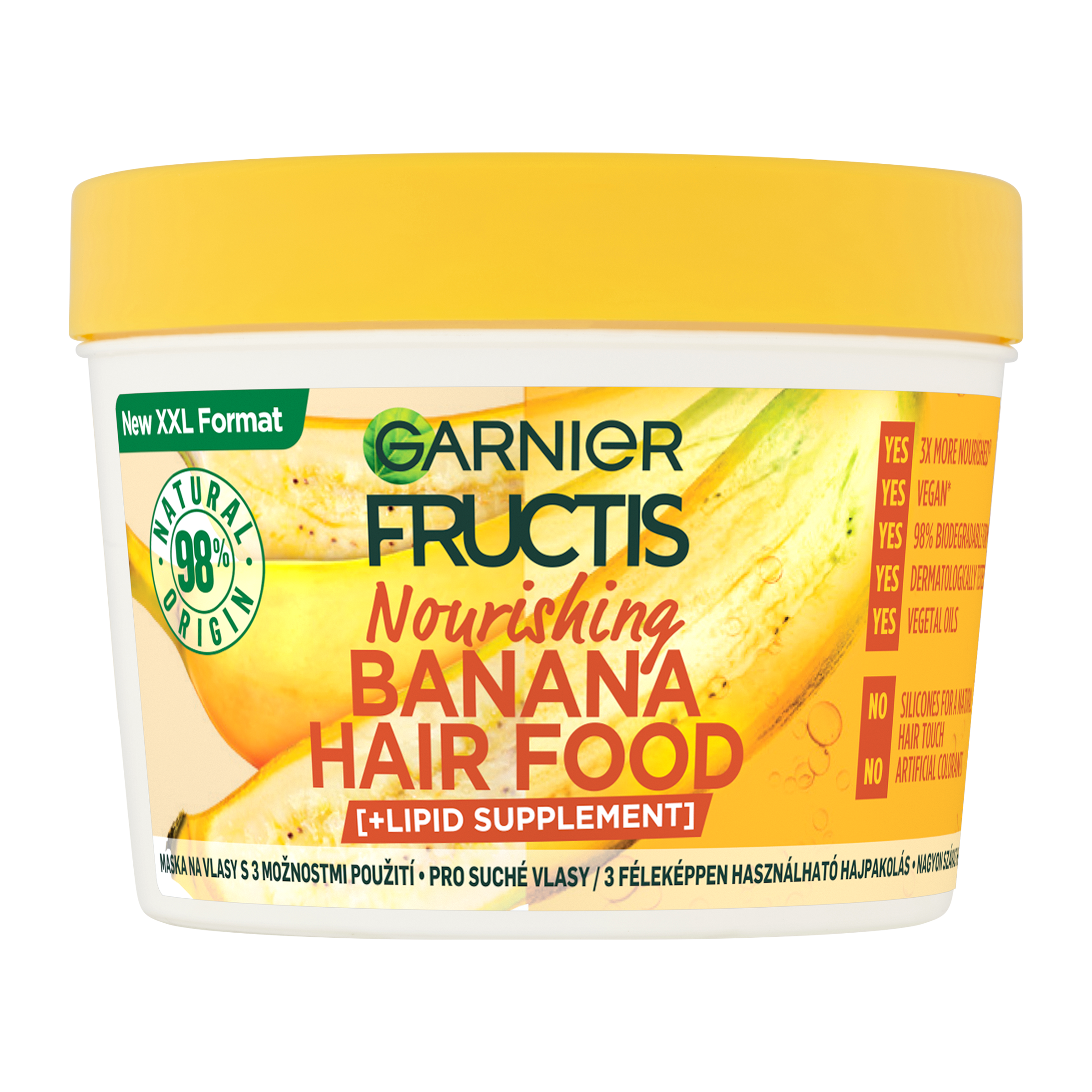 Vyživující maska na vlasy pro suché vlasy, obohacená o vitamíny C, E a F a se 3 možnostmi použití: