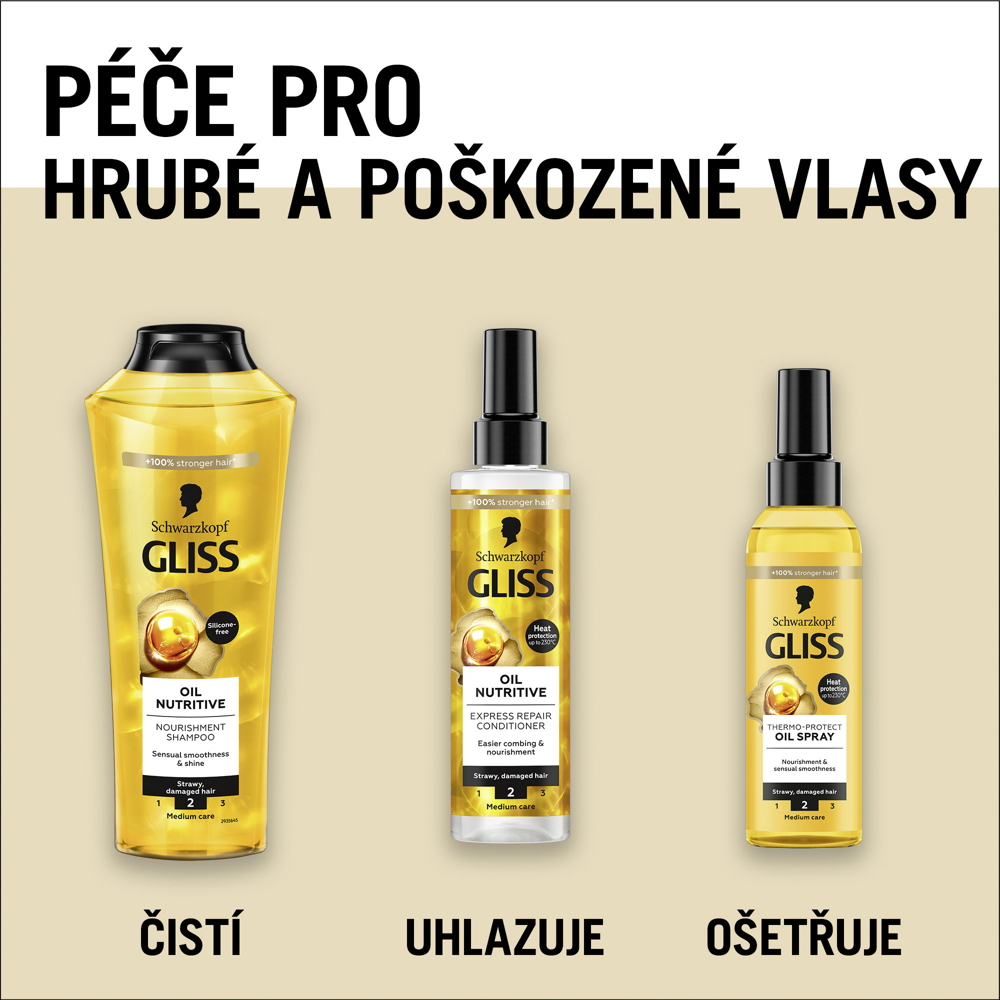 - Výživa a regenerace: Řada Oil Nutritive nabízí intenzivní kúru na obnovu vlasů s pečující výživou. Zvláště vhodná pro velmi suché vlasy.