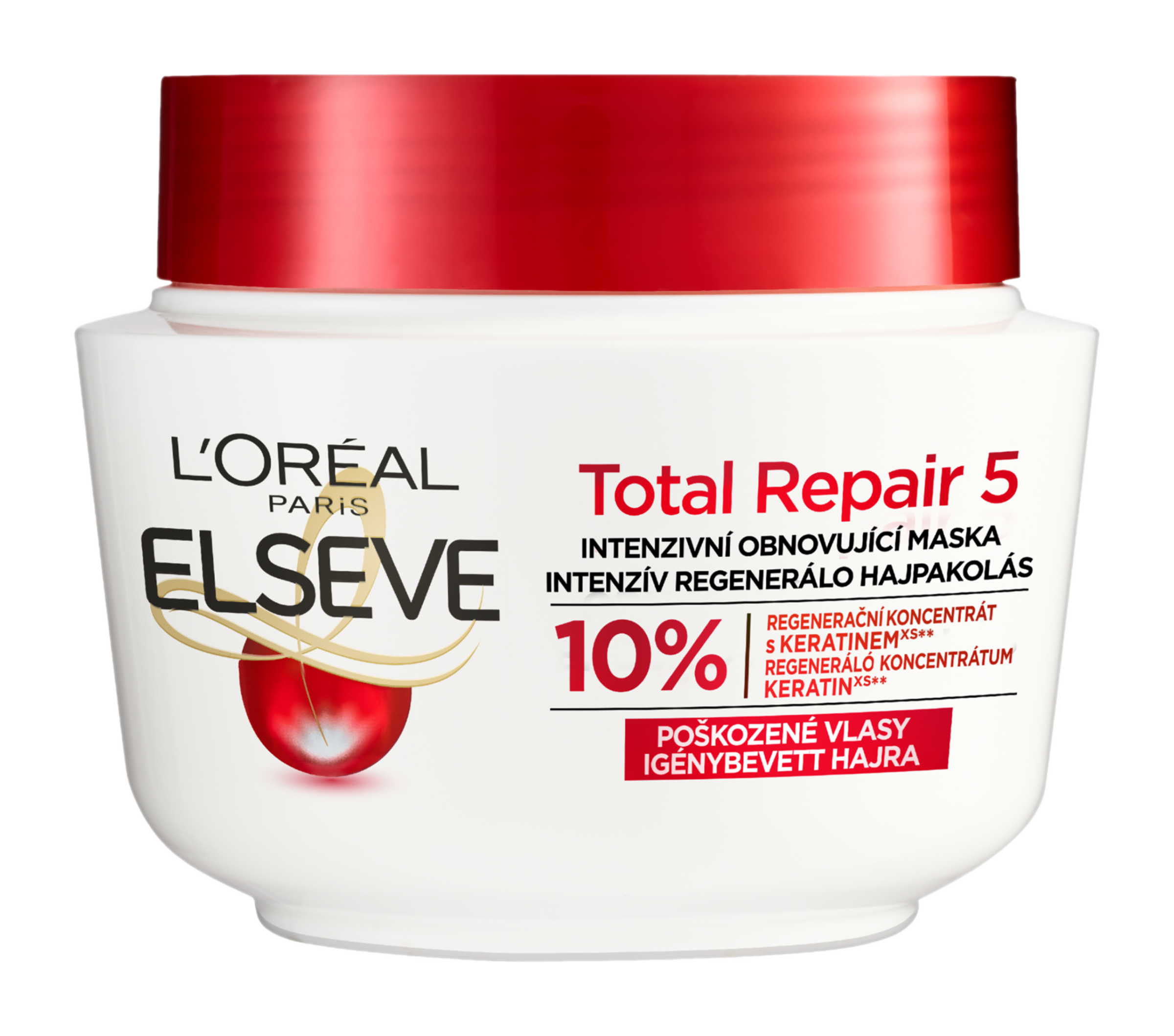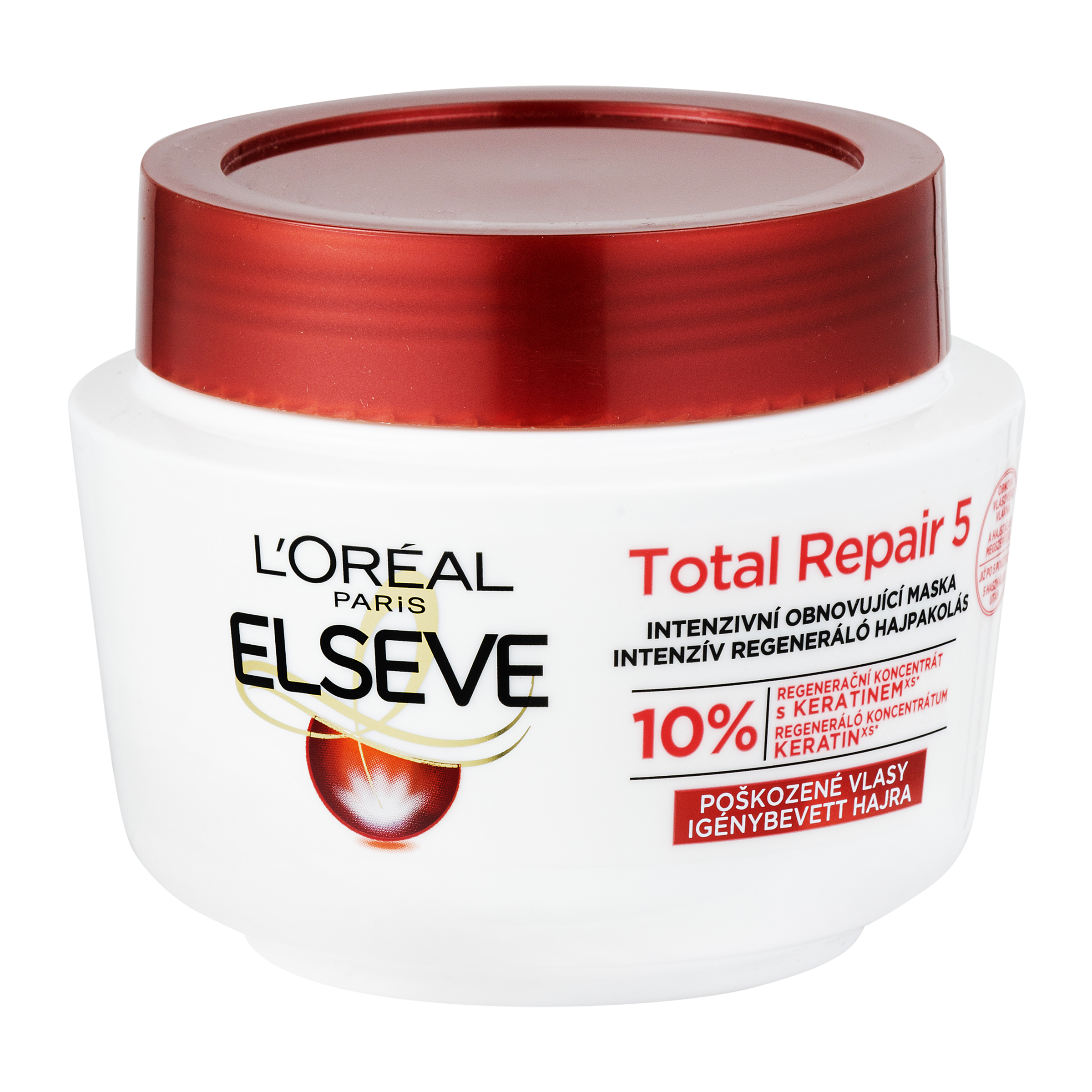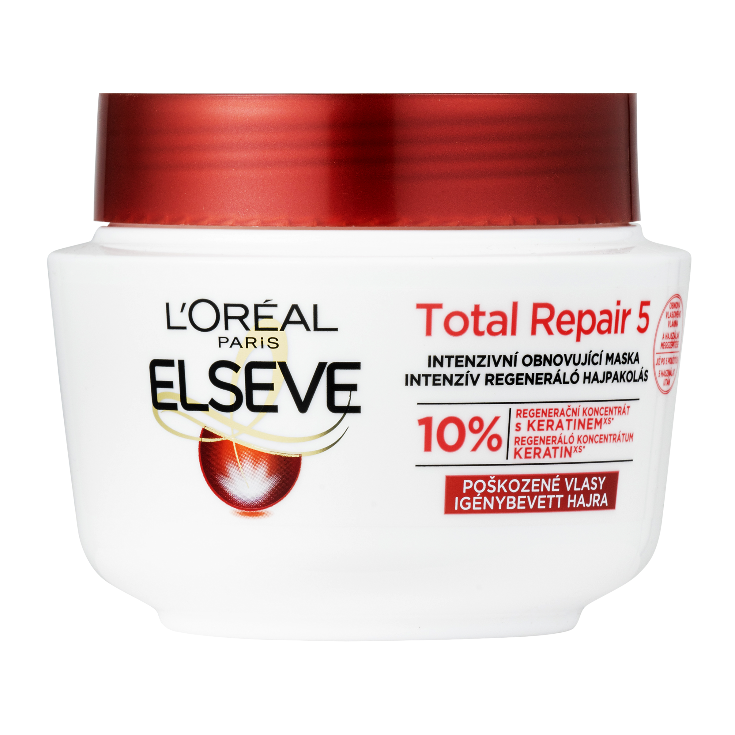 Vlivem času a vnějších dráždivých faktorů se poškozuje přirozená bariéra vlasu. Vlasy se ztenčují, slábnou, jsou ploché, drsné a mdlé. Regenerační maska L’Oréal Paris Elseve Total Repair 5 obnovuje krásu vlasů. Pečující složení obohacené o výtažek z měsíčku, po staletí používanou rostlinu se zjemňujícími vlastnostmi, pomáhá posílit vlasové vlákno pro dosažení hladkého a jednotného efektu. Dále složení s ceramidem posiluje vlasovou strukturu. Po pravidelnému používání masky jsou vlasy zregenerované, hladké a lesklé na dotek.